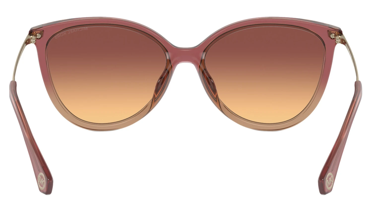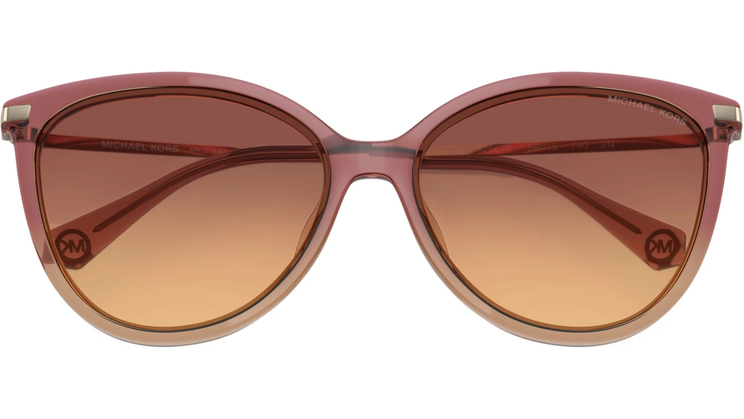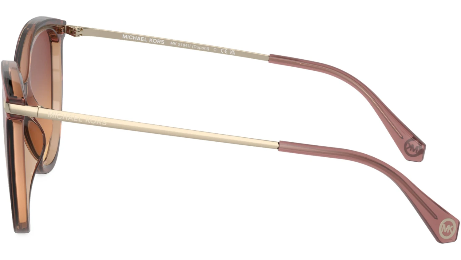 Michael Kors sunglasses for women model 2184U Dupont featuring dusty rose light brown full rim injection frame and base 2 purple amber gradient lenses. Universal fit. Frame line: Sport-Luxe Chic. Brand code: 0MK2184U. Color code: 325678. Authorised Michael Kors Eyewear Online Reseller. Your glasses will come including the original case and accessories and will be covered by 12 month global warranty.