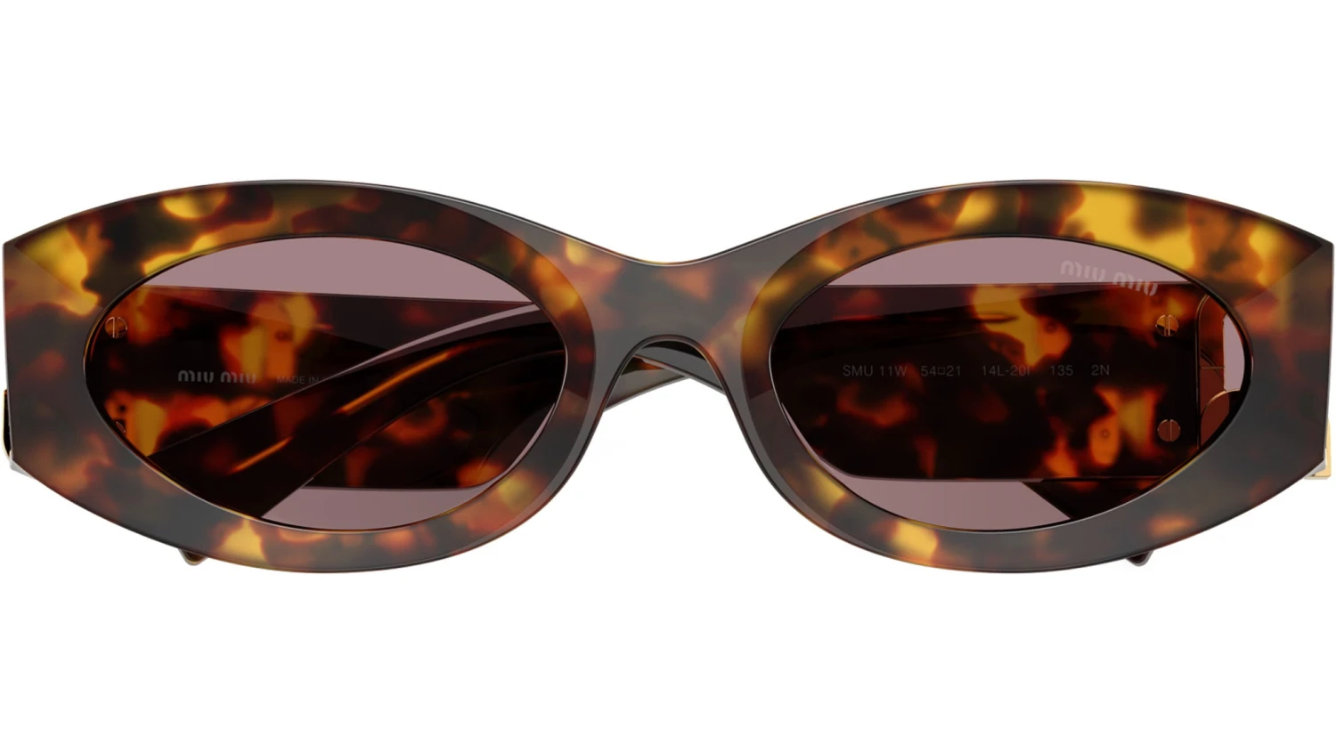 Miu Miu MU 11WS 14L20I sunglasses for women, featuring honey havana oval acetate frame and light purple brown bio polyamide lenses. Universal fit. Brand line: Special Project. Style code: 0MU 11WS. Color code: 14L20I. Made in Italy. Authorized Miu Miu online reseller. Your glasses will include the original case and accessories and are covered by a 12-month global warranty.