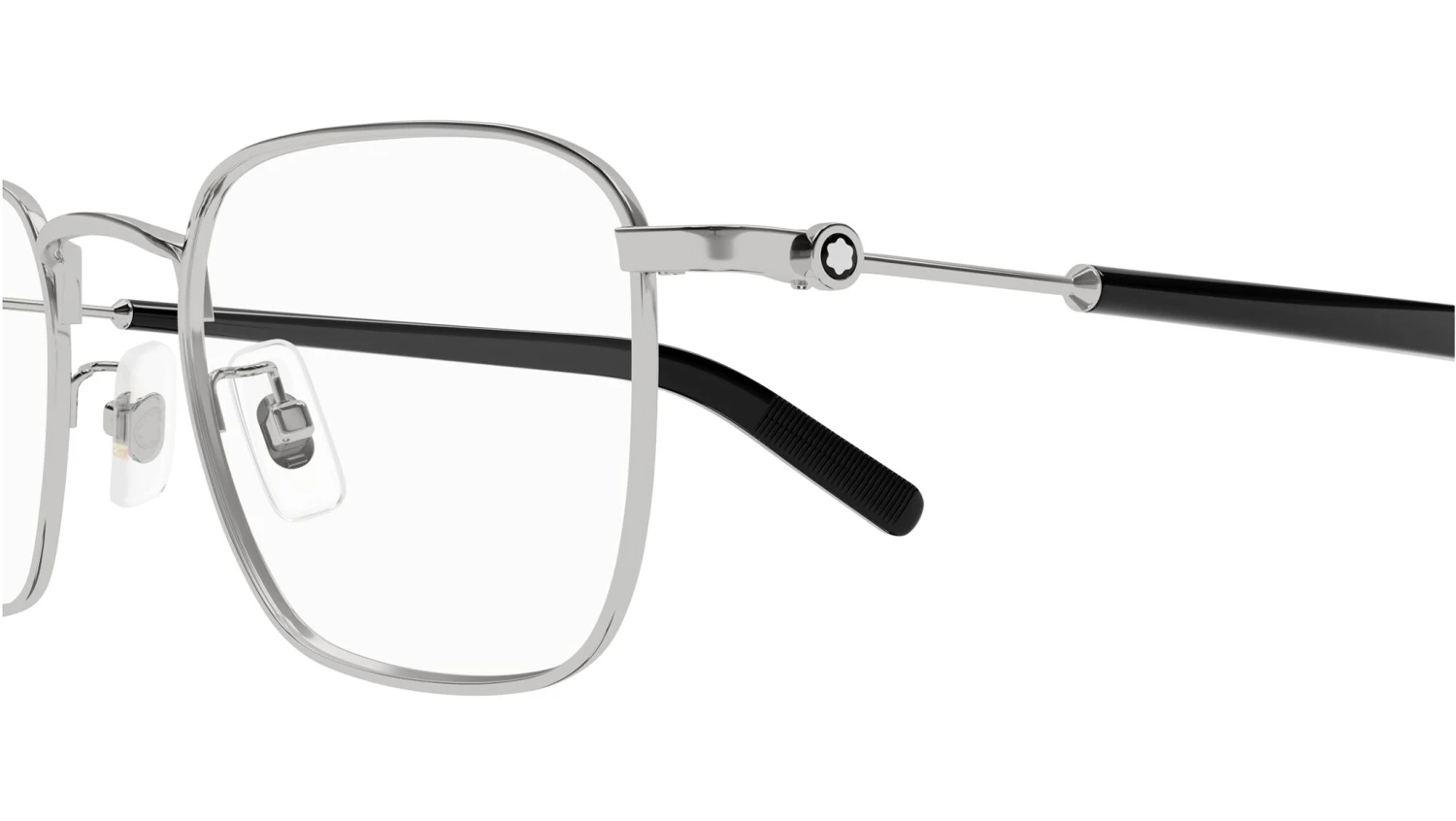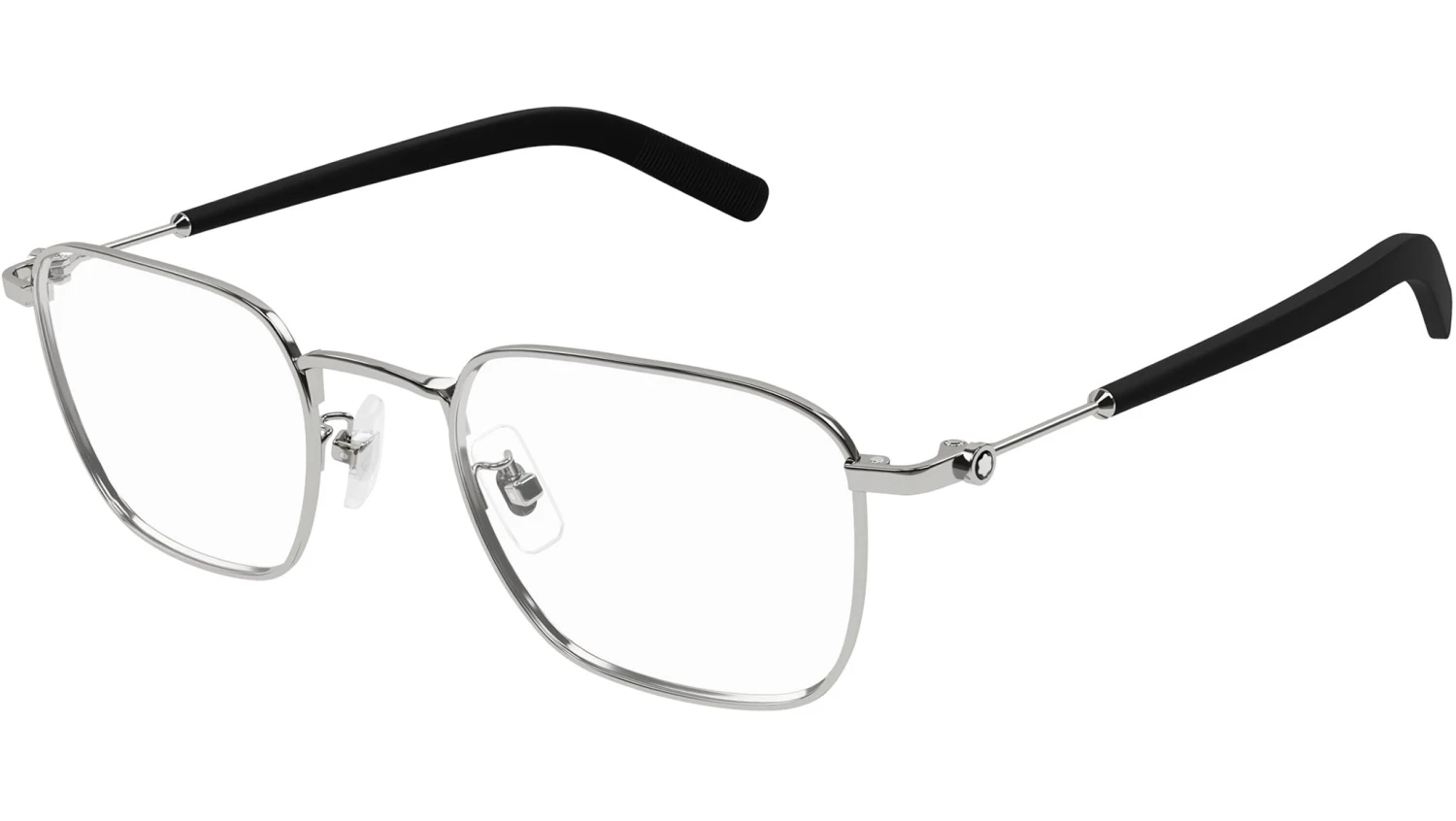 Montblanc MB0389O 007 glasses for men, featuring shiny light ruthenium rectangular metal frame and demo lenses. Brand line: Snowcap. Style code: MB0389O. Color code: 007. Made in Japan. Authorized Montblanc online reseller. Your glasses will include the original case and accessories and are covered by a 12-month global warranty.