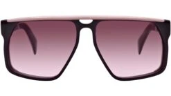 These sunglasses feature a dark red 8mm cured cellulose acetate frame with custom double laminated acetate temples and red lenses, a hiddensilver wirecore, a silver tension-secured custom 7 barrel hinge. Berry gradient CR-39, 6 base lens with backside anti-reflective treatment. Aviator frame shape and 100% UV protection.