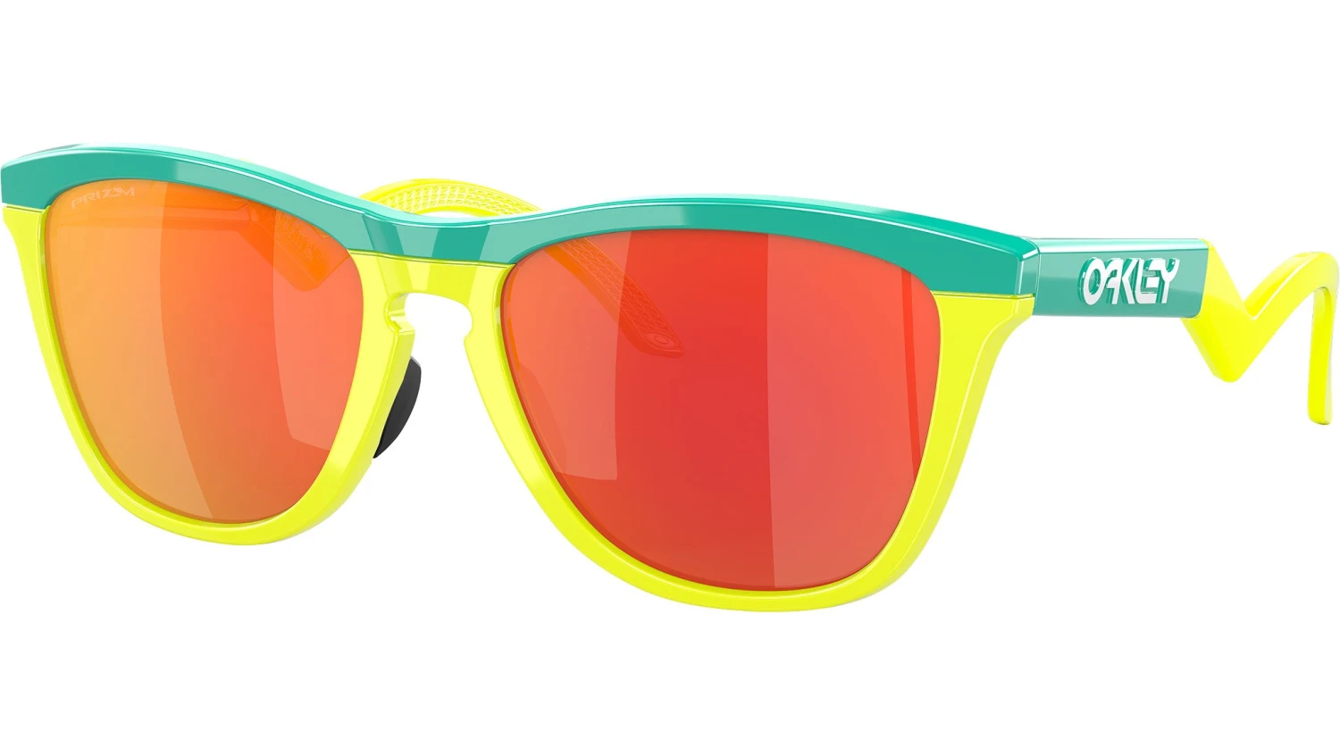 Oakley Frogskins Hybrid sunglasses model OO9289 color code 02 celeste / tennis ball yellow variant with prizm ruby lens.