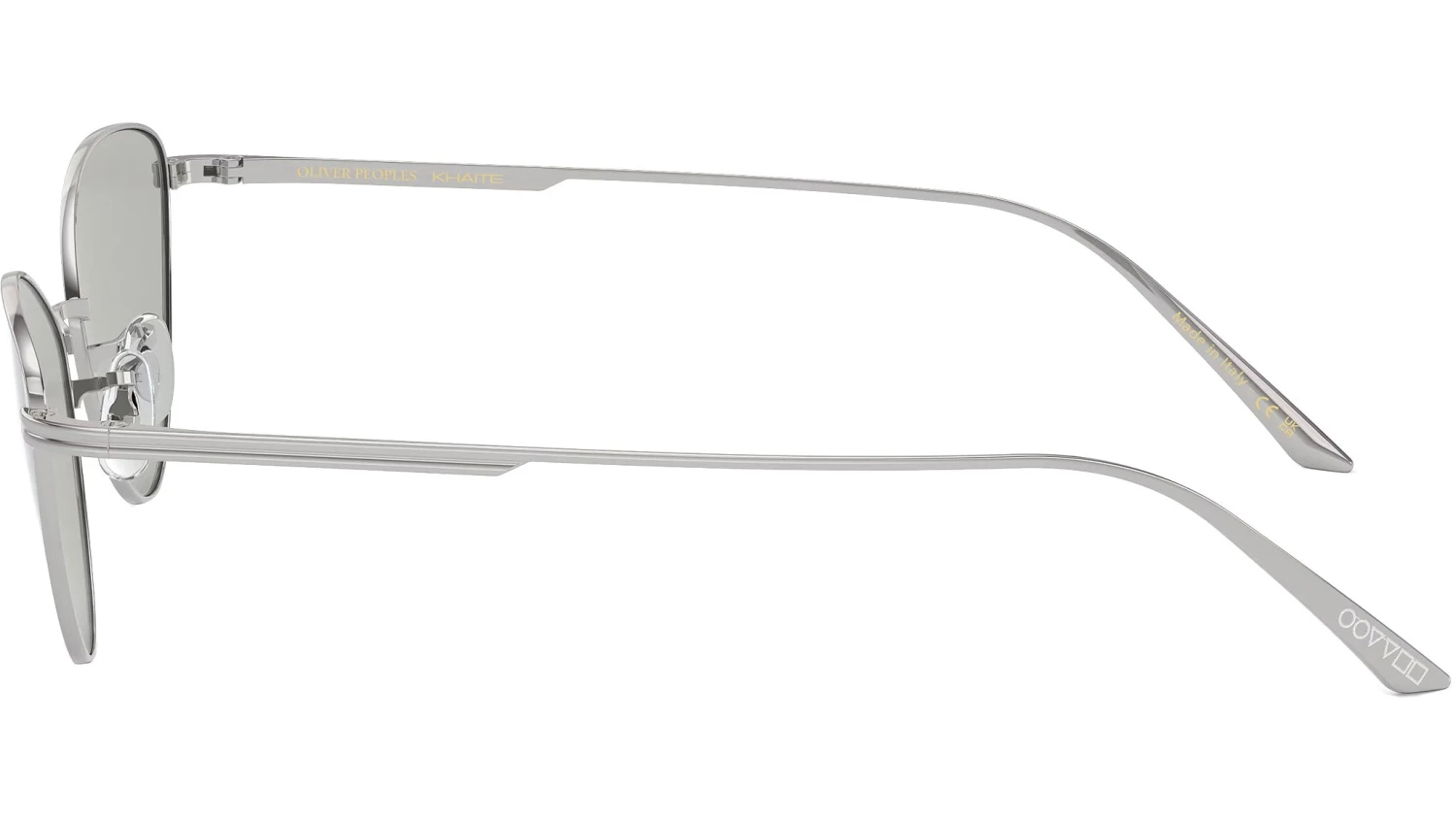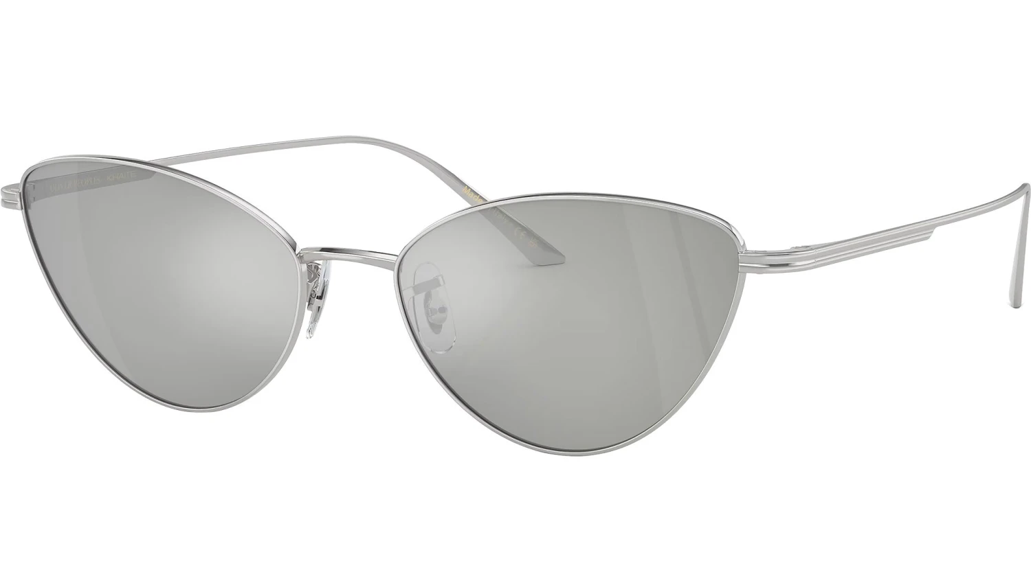 Introducing the latest addition to the Oliver Peoples Khaite collaboration, the 1998C OV1328S – a captivating metal cat-eye sunglass. This design features an extraordinary upswept lens shape, accentuated by a custom temple design that mirrors the exclusive corewire found in the acetate styles. The striking combination of bold metal and lens pairings yields a powerful and distinctly feminine aesthetic. Ideal for those with smaller faces, this sunglass delivers both style and comfort.