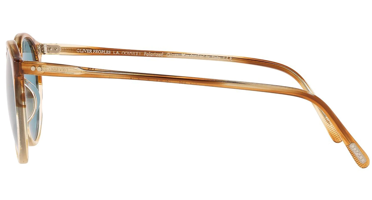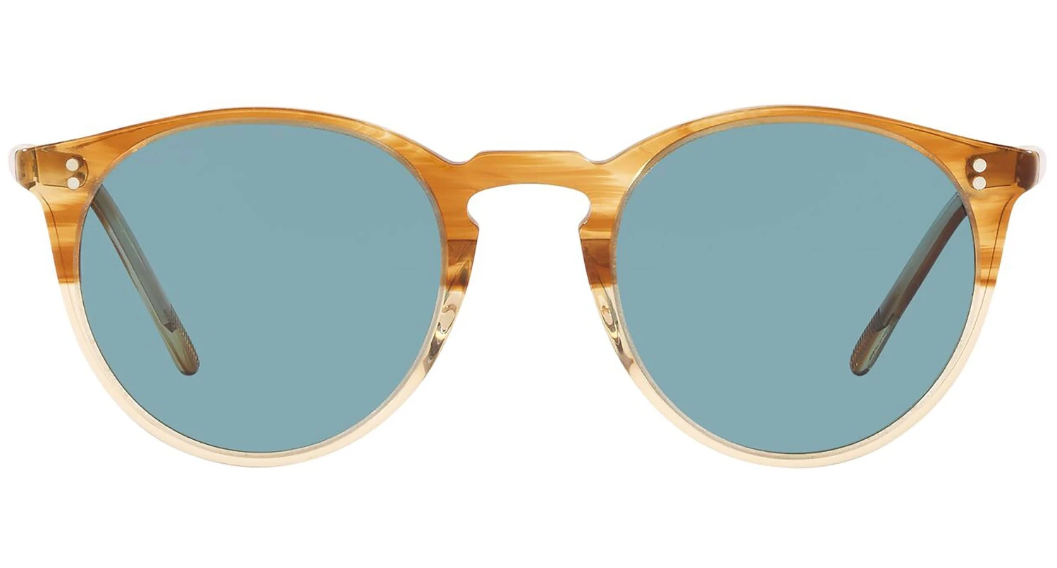 Oliver Peoples O’Malley Sun OV5183S 1674P1 sunglasses for men, featuring honey VSB panthos acetate frame and teal polar glass lenses. High bridge fit. Brand line: Archive. Style code: 0OV5183S. Color code: 1674P1. Made in Italy. Authorized Oliver Peoples online reseller. Your glasses will include the original case and accessories and are covered by a 12-month global warranty.