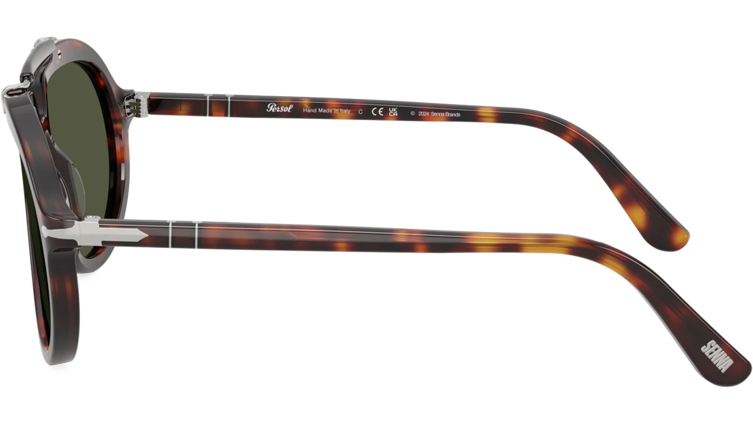The Persol Senna Series collection celebrates Ayrton Senna’s legacy with a modern reinterpretation of his iconic style. Inspired by an archive model he wore and created in collaboration with Netflix for the new series dedicated to the Formula 1 champion, these sunglasses combine elegance, charisma, and timeless design. The teardrop silhouette, offered in a rich palette of colours, pays tribute to the golden age of racing, while authentic details like the sweat bar and custom temple tips featuring the Persol and Senna Series logos evoke the bold spirit of the legend. Each model comes with an exclusive case that reflects the elegance of racing cars and the unmistakable style of the champion. Persol unisex sunglasses model PO 0202S featuring havana full rim acetate frame and base 6 green lenses. High bridge fit. Frame line: Sartoria. Brand code: 0PO0202S. Color code: 24/31. Authorised Persol Eyewear Online Reseller. Your glasses will come including the original case and accessories and will be covered by 12 month global warranty.