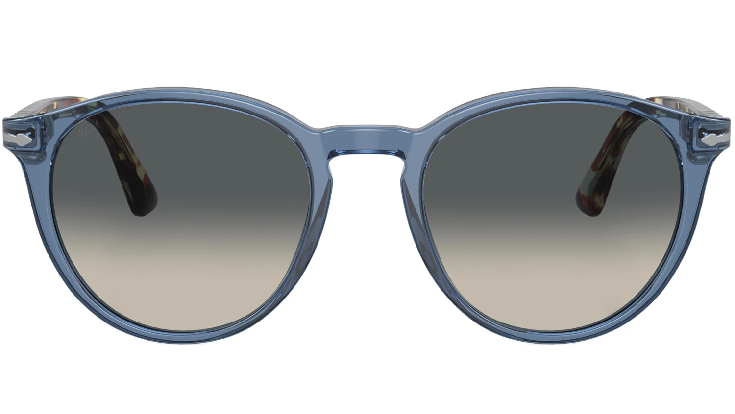 Persol sunglasses model PO3152S color code 120271 featuring transparent navy full rim acetate frame and glass light grey gradient dark grey lenses. Embodying its evocative name, which signifies “for sun” Persol stands as a testament to a rich heritage of superior craftsmanship and excellence and seamlessly blends aesthetics and technology, representing the epitome of handcrafted Italian manufacturing. Renowned for its timeless design and artistry, the brand has become a beloved choice within the realm of cinema. Authorised Persol Online Reseller. Your glasses will come including the original case and accessories and will be covered by 12 month global warranty.