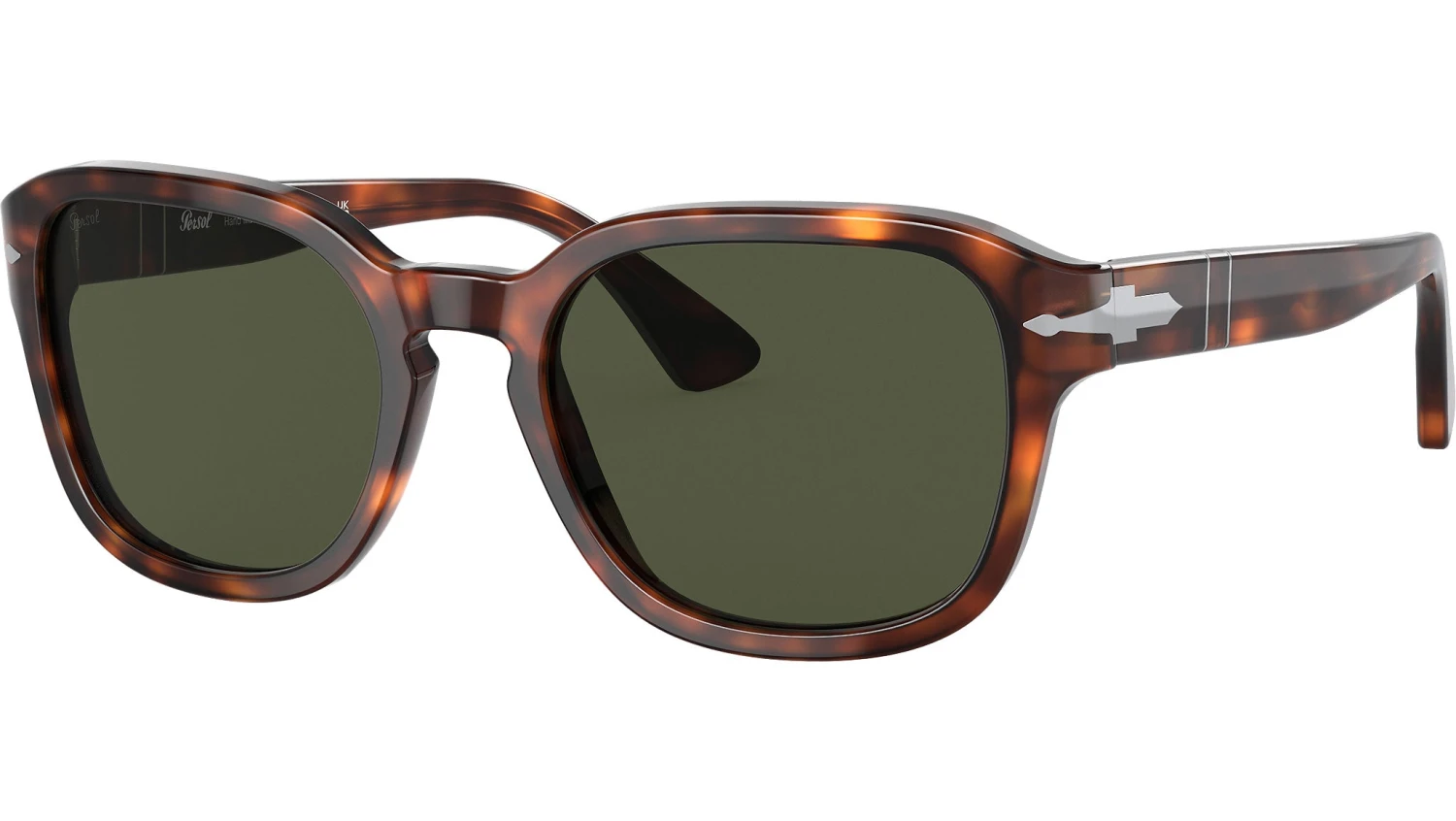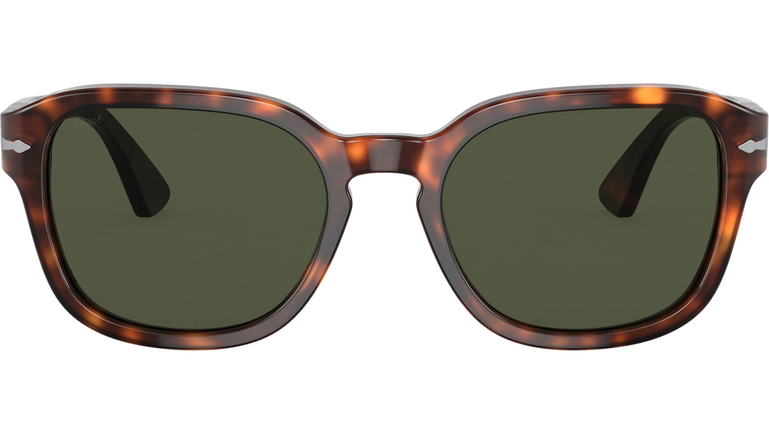 Persol sunglasses model PO3305S color code 24/31 featuring havana full rim acetate frame and glass green lenses. Meticulous attention to every intricate detail ensures distinct styles and practical solutions. Driven by an unwavering passion for skill refinement and an unrelenting pursuit of innovation, Persol embodies true quality. Embodying its evocative name, which signifies “for sun” this brand stands as a testament to a rich heritage of superior craftsmanship and excellence. Persol seamlessly blends aesthetics and technology, representing the epitome of handcrafted Italian manufacturing. Renowned for its timeless design and artistry, the brand has become a beloved choice within the realm of cinema.