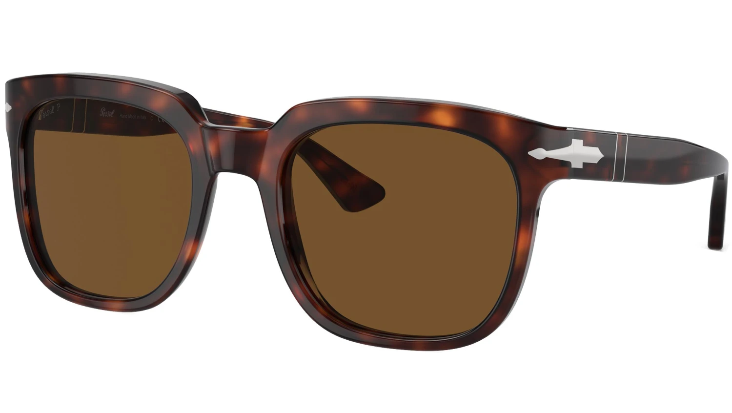 Persol sunglasses model PO3323S color code 24/57 featuring havana full rim acetate frame and glass brown polar lenses. Embodying its evocative name, which signifies “for sun” Persol stands as a testament to a rich heritage of superior craftsmanship and excellence and seamlessly blends aesthetics and technology, representing the epitome of handcrafted Italian manufacturing. Renowned for its timeless design and artistry, the brand has become a beloved choice within the realm of cinema. Authorised Persol Online Reseller. Your glasses will come including the original case and accessories and will be covered by 12 month global warranty.