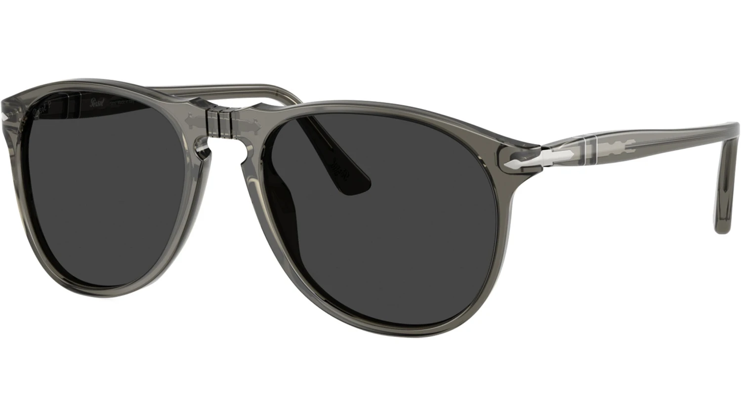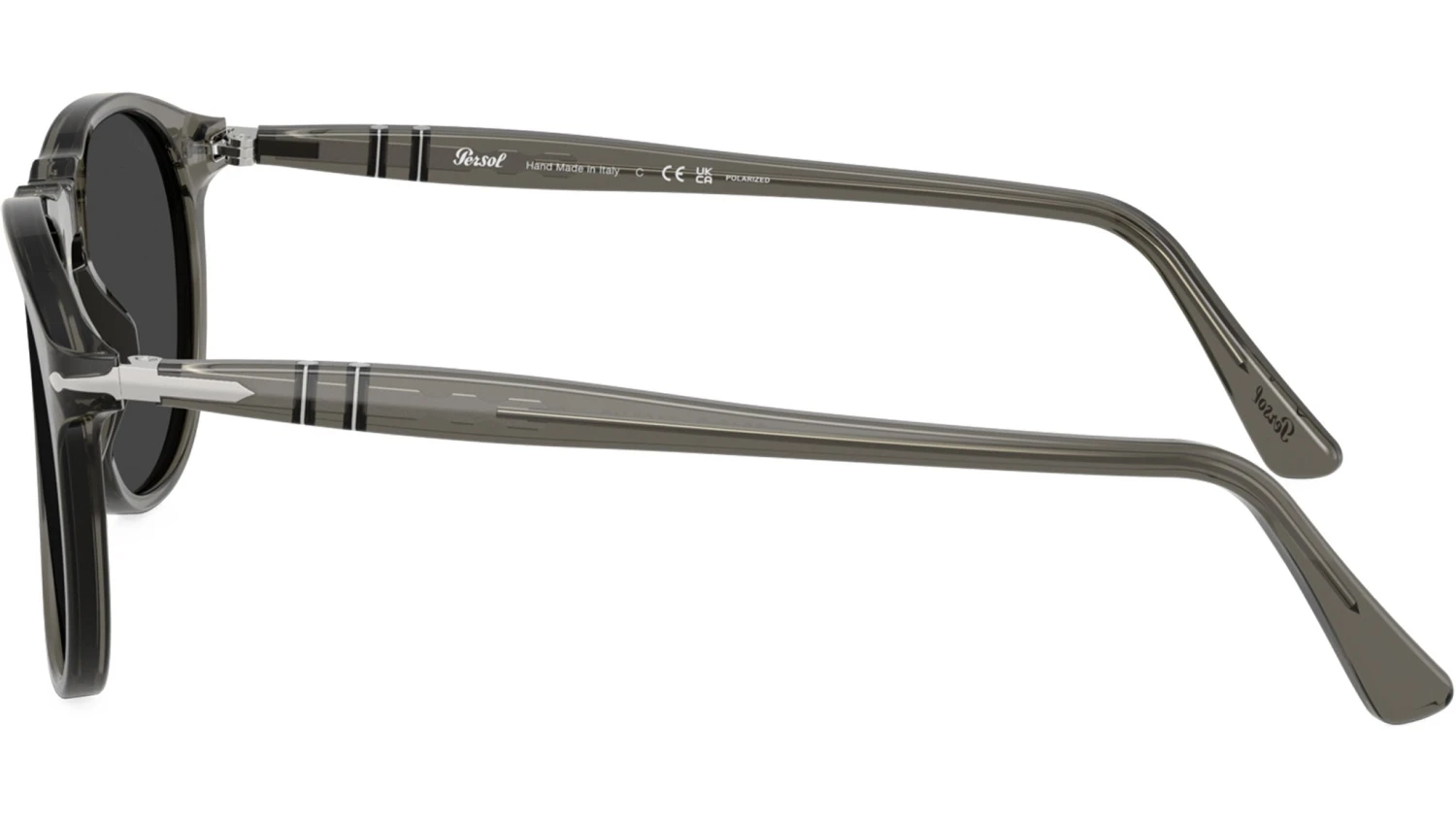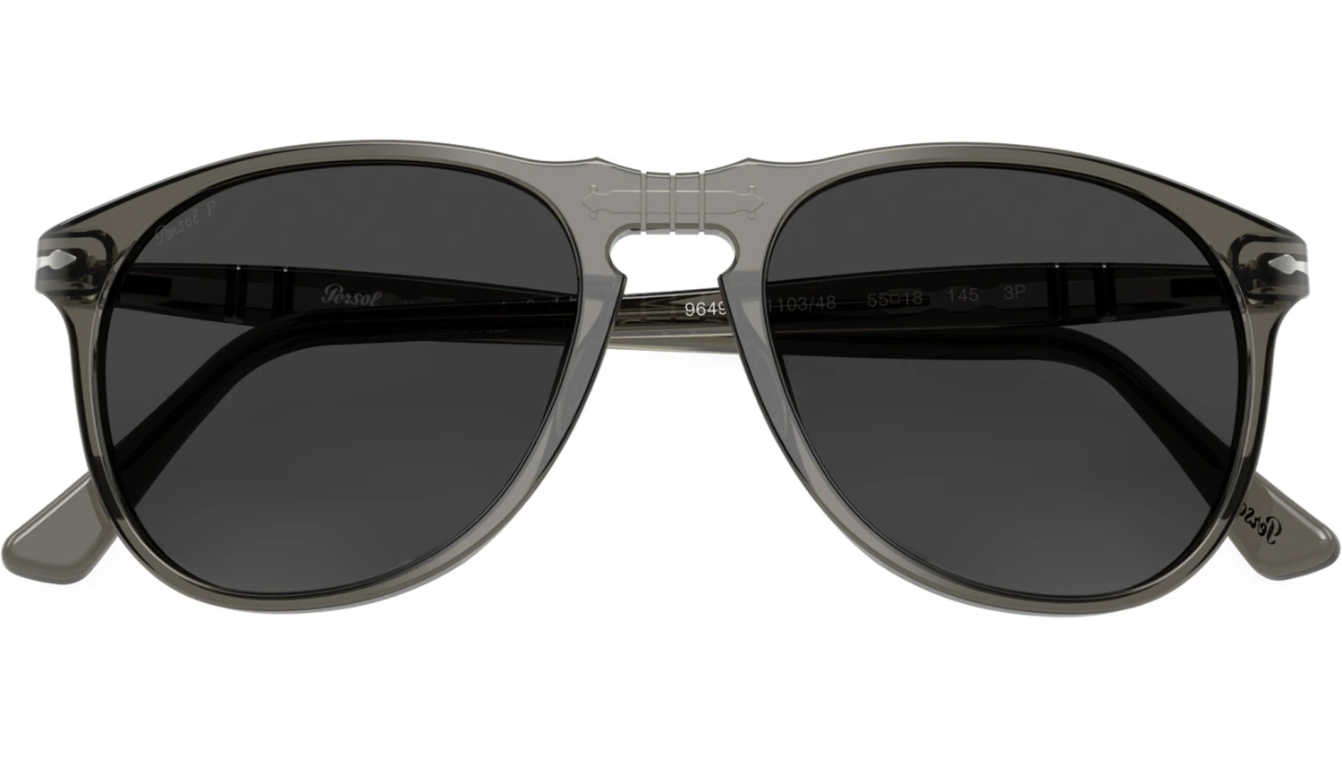 Persol sunglasses for men model PO9649S featuring smoke full rim acetate frame and base 6 polar black lenses. High bridge fit. Frame line: Icona. Brand code: 0PO9649S. Color code: 110348. Authorised Persol Eyewear Online Reseller. Your glasses will come including the original case and accessories and will be covered by 12 month global warranty.