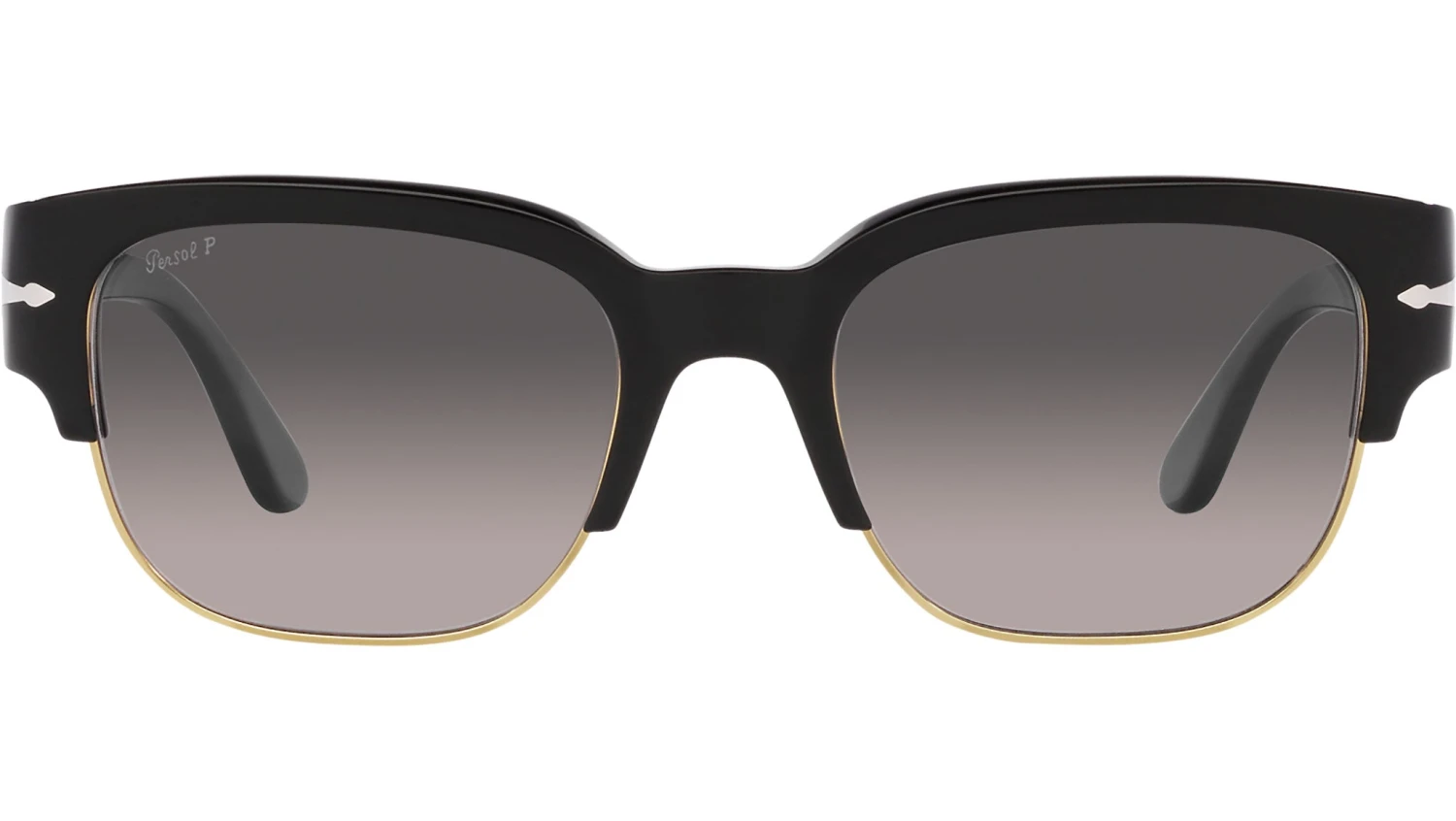 Persol Tom sunglasses model PO3319S color code 95/M3 featuring black full rim acetate frame and glass grey gradient polarized lenses. Meticulous attention to every intricate detail ensures distinct styles and practical solutions. Driven by an unwavering passion for skill refinement and an unrelenting pursuit of innovation, Persol embodies true quality. Embodying its evocative name, which signifies “for sun” this brand stands as a testament to a rich heritage of superior craftsmanship and excellence. Persol seamlessly blends aesthetics and technology, representing the epitome of handcrafted Italian manufacturing. Renowned for its timeless design and artistry, the brand has become a beloved choice within the realm of cinema.