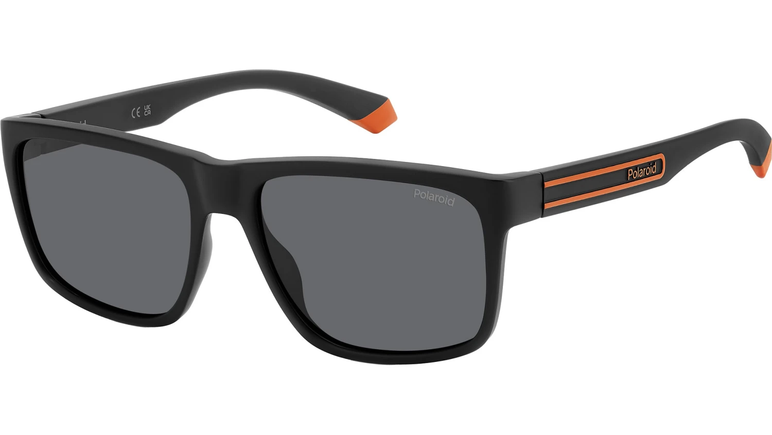 Polaroid PLD 2149/S 8LZ M9 sunglasses for men, featuring black orange rectangular polycarbonate frame and grey polarized lenses. Outdoor adventures gain new momentum thanks to these Polaroid sunglasses. Made of lightweight yet impact-resistant polycarbonate, they’re incredibly versatile thanks to their rectangular shape. Polaroid adds a touch of colour with contrast end tips that match the raised motif on the temples. Polarized lenses (with mirrored and multi-layer options), ensure extra protection for the eyes during the sunniest times of day. Brand line: Active. Style code: 206455. Color code: 8LZ M9. Authorized Polaroid online reseller. Your glasses will include the original case and accessories and are covered by a 12-month global warranty.