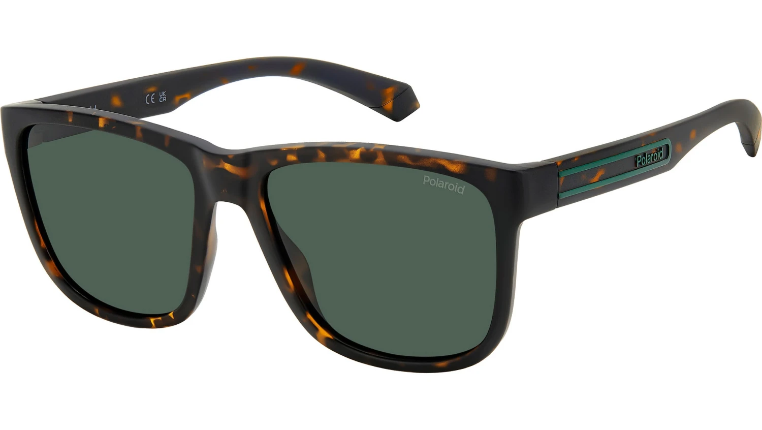 Polaroid PLD 2155/S HGC UC sunglasses for men, featuring matte brown havana rectangular polycarbonate frame and green polarized lenses. Inspired by the active world, these Polaroid sunglasses are the latest trend in street style. The square front is shaped into slightly rounded corners. On the temples, a colourful outline surrounds the Polaroid logo, on-tone with the end tips. Polarized sun lenses complete these glasses, with mirrored and multi-layer options, for optimal vision in all lighting conditions. Brand line: Active. Style code: 206733. Color code: HGC UC. Authorized Polaroid online reseller. Your glasses will include the original case and accessories and are covered by a 12-month global warranty.