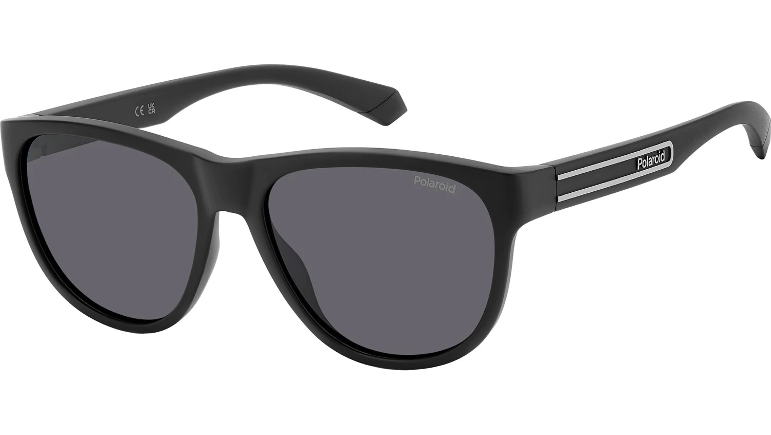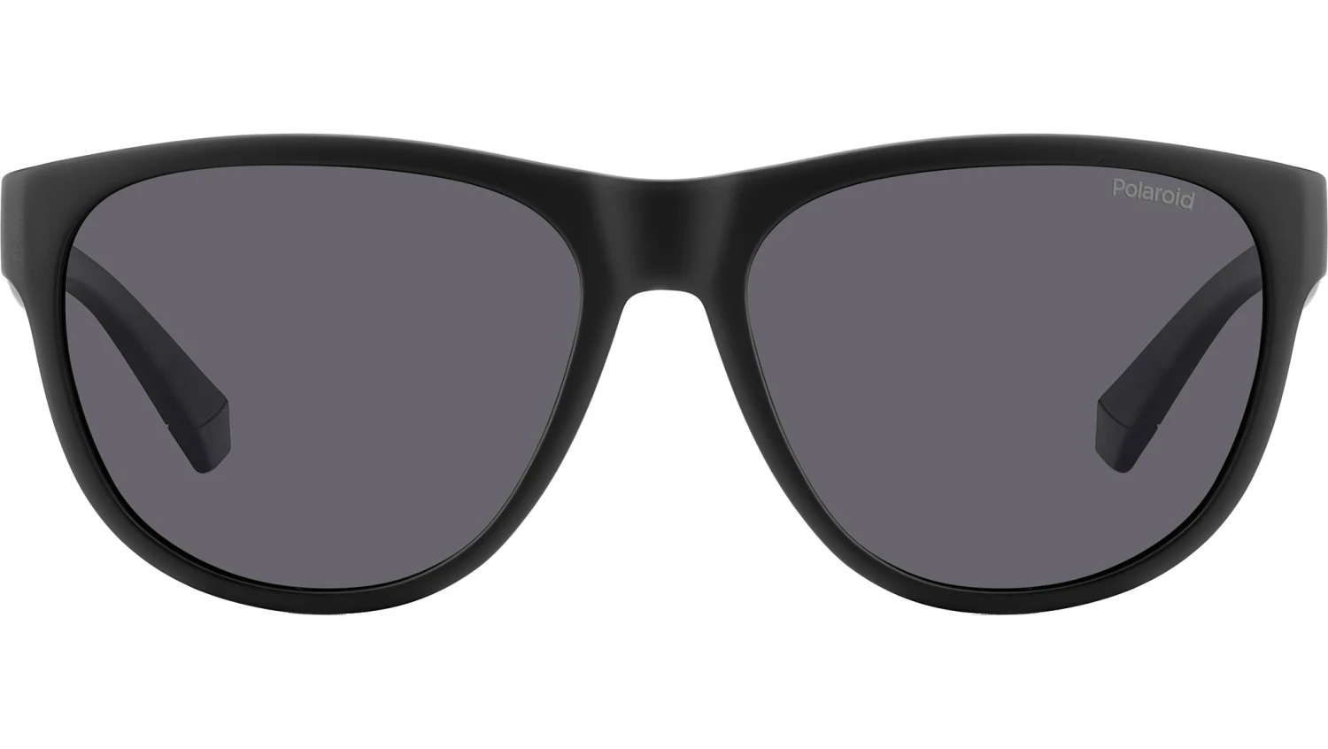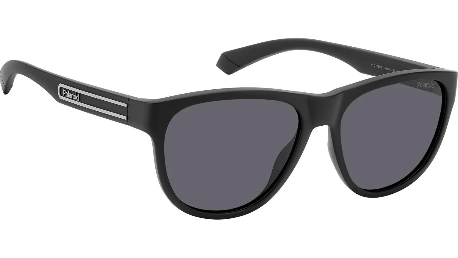 Polaroid PLD 2156/S 003 M9 sunglasses for men and women, featuring matte black rectangular polycarbonate frame and grey polarized lenses. Activewear and metropolitan inspirations intertwine in these Polaroid sunglasses. The rounded shape of the front is suitable for men and women. Contrast details trim the temples: the Polaroid logo is framed by a pad-printed loop, on-tone with the end tips. The colour palettes range from essential tones to bold hues, and the lenses come in mirrored and multi-layer options. Brand line: Active. Style code: 206734. Color code: 003 M9. Authorized Polaroid online reseller. Your glasses will include the original case and accessories and are covered by a 12-month global warranty.