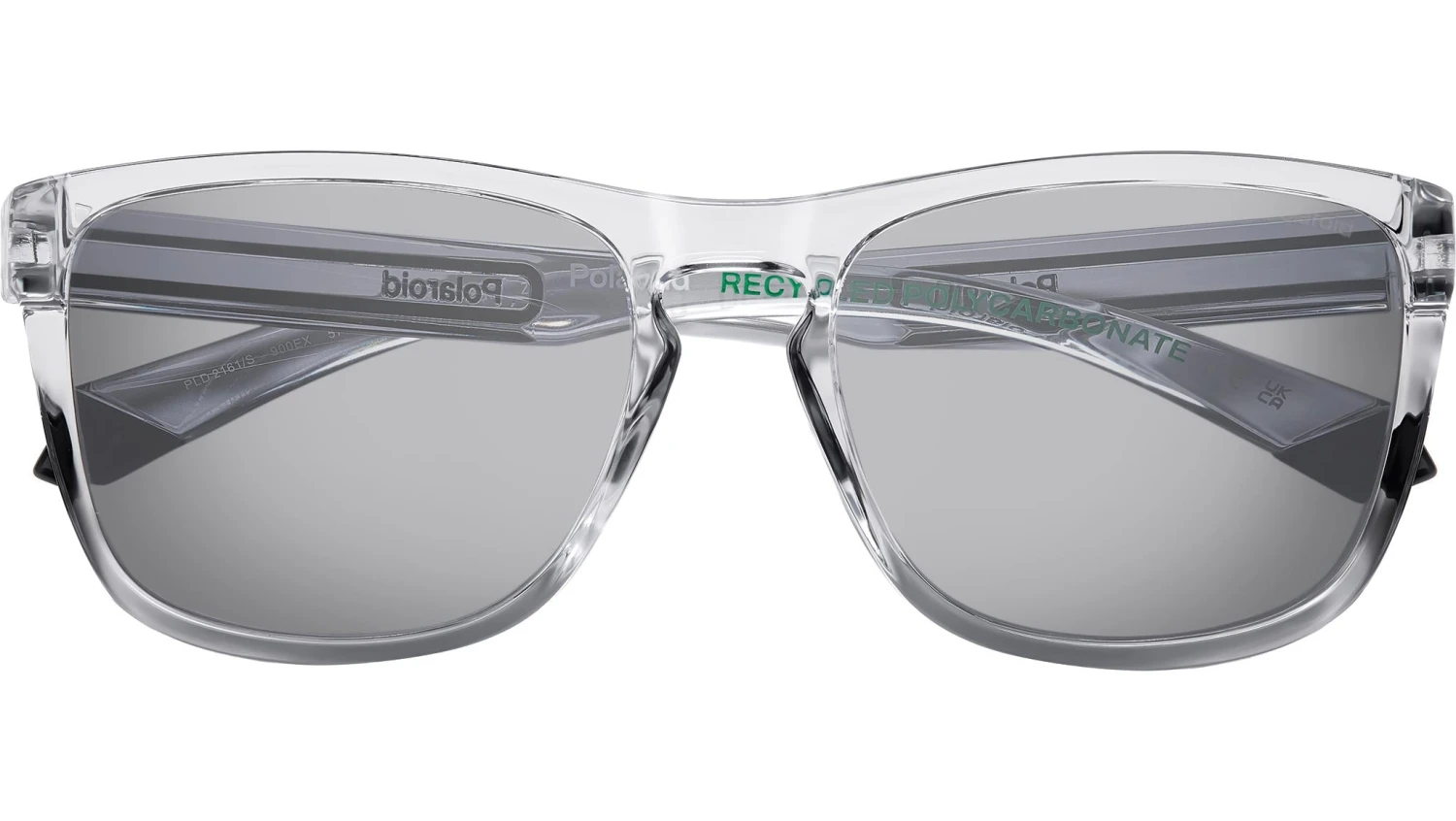 Polaroid PLD 2161/S 900 EX sunglasses for men and women, featuring crystal rectangular polycarbonate frame and grey silver mirror polarized lenses. These unisex Polaroid sunglasses are made to be flaunted with casual looks and even formal ones, for style that’s always recognisable. In eco-polycarbonate, they’re lightweight and clearly demonstrate Polaroid’s commitment to the environment. They’ll win everyone over with their easy-to-wear look, featuring a keyhole bridge and colourful sport-inspired detailing on the temples. The version with mirrored lenses is even bolder. Brand line: Active. Style code: 207372. Color code: 900 EX. Authorized Polaroid online reseller. Your glasses will include the original case and accessories and are covered by a 12-month global warranty.