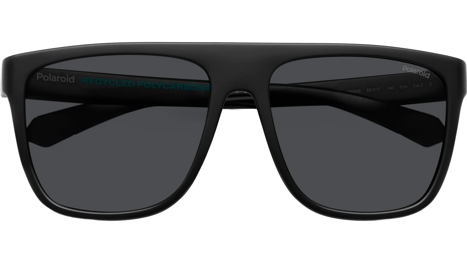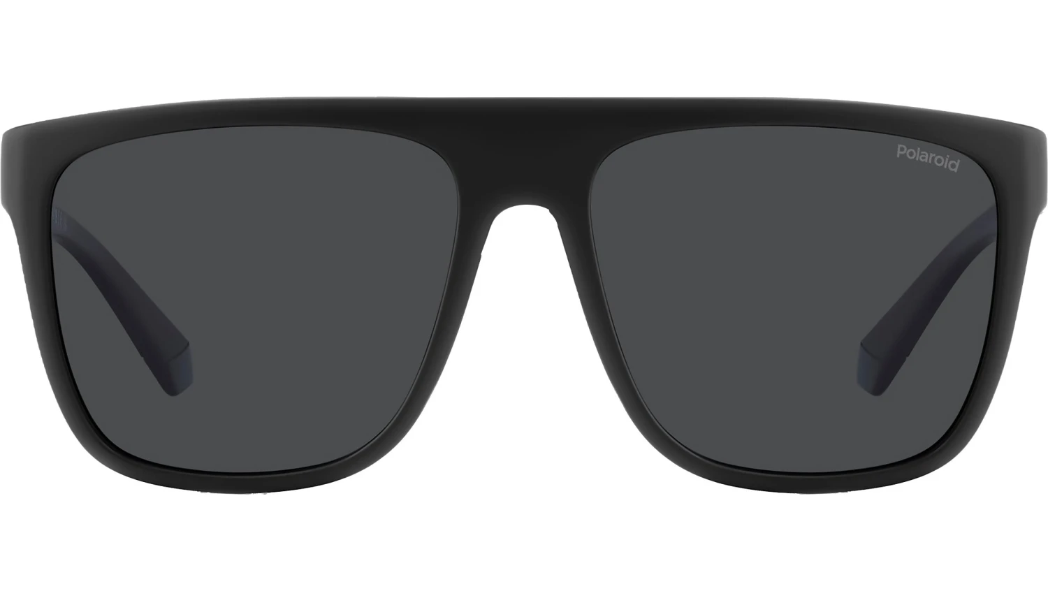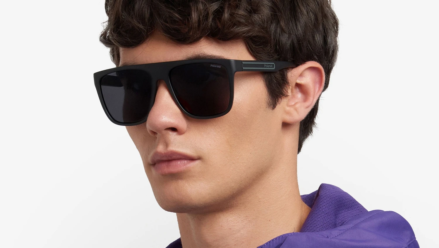 Polaroid PLD 2162/S 003 M9 sunglasses for men, featuring matte black rectangular polycarbonate frame and grey polarized lenses. These Polaroid sunglasses for men add a sporty touch to any look. Their dynamic character arises from the square shape, flat along the top, and the graphic detail printed on the temples, along with the logo. To Polaroid, comfort is a priority: made from lightweight eco-polycarbonate, this style comes in two different lens sizes to better suit all faces. A mirrored lens version ensures their wow factor. Brand line: Active. Style code: 207373. Color code: 003 M9. Authorized Polaroid online reseller. Your glasses will include the original case and accessories and are covered by a 12-month global warranty.
