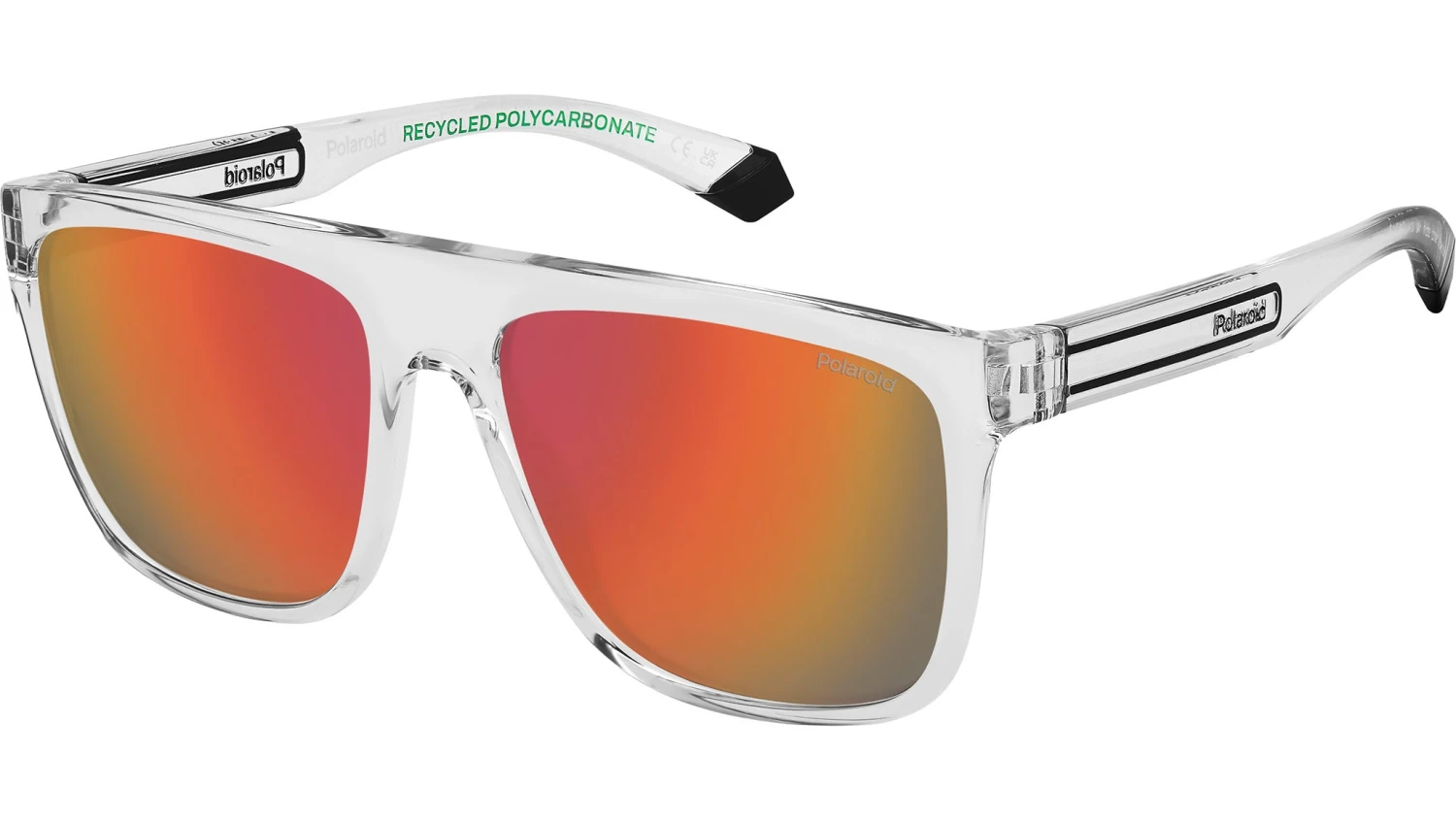 Polaroid PLD 2162/S 900 OZ sunglasses for men, featuring crystal rectangular polycarbonate frame and red multilayer polarized lenses. These Polaroid sunglasses for men add a sporty touch to any look. Their dynamic character arises from the square shape, flat along the top, and the graphic detail printed on the temples, along with the logo. To Polaroid, comfort is a priority: made from lightweight eco-polycarbonate, this style comes in two different lens sizes to better suit all faces. A mirrored lens version ensures their wow factor. Brand line: Active. Style code: 207373. Color code: 900 OZ. Authorized Polaroid online reseller. Your glasses will include the original case and accessories and are covered by a 12-month global warranty.