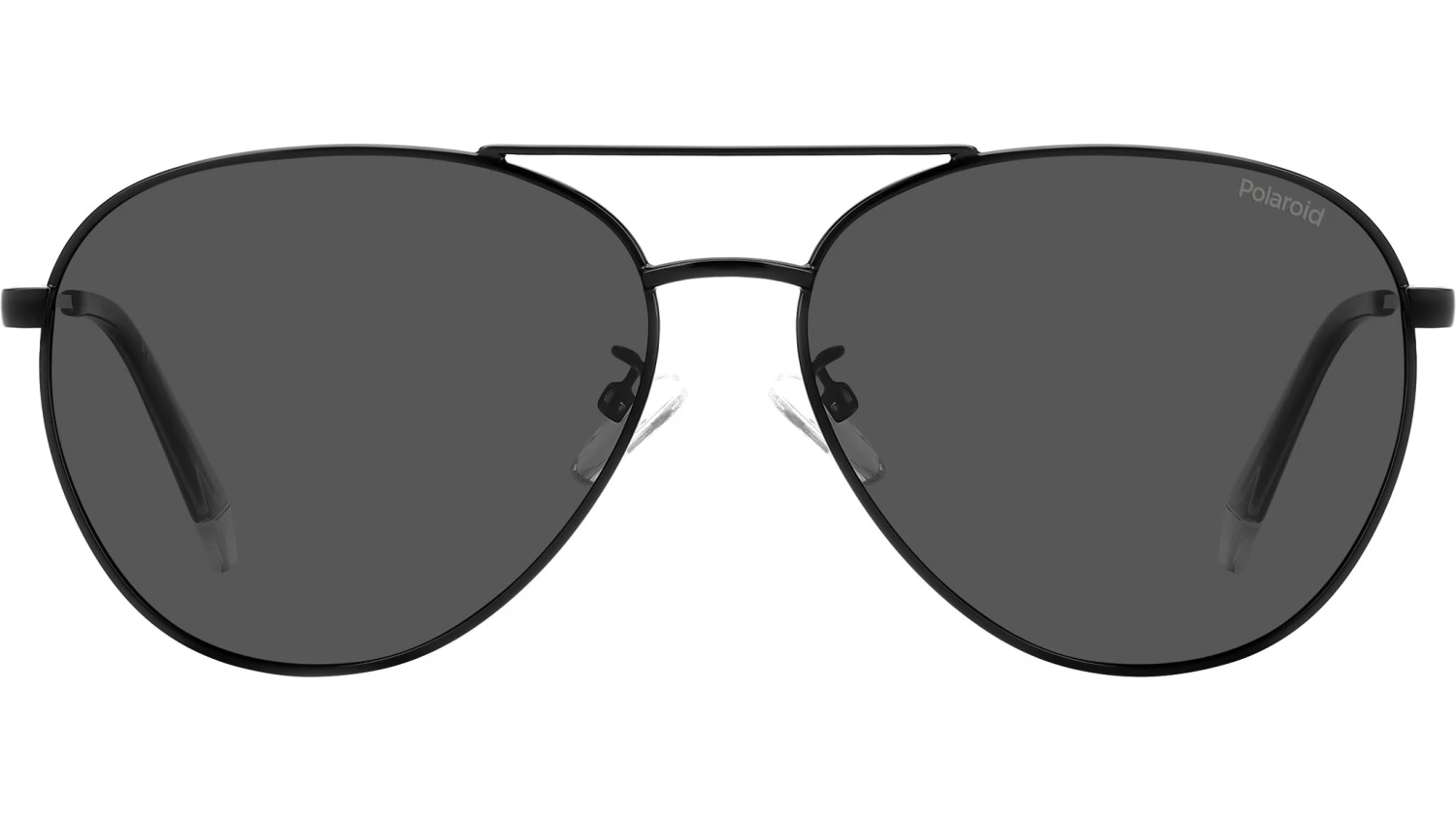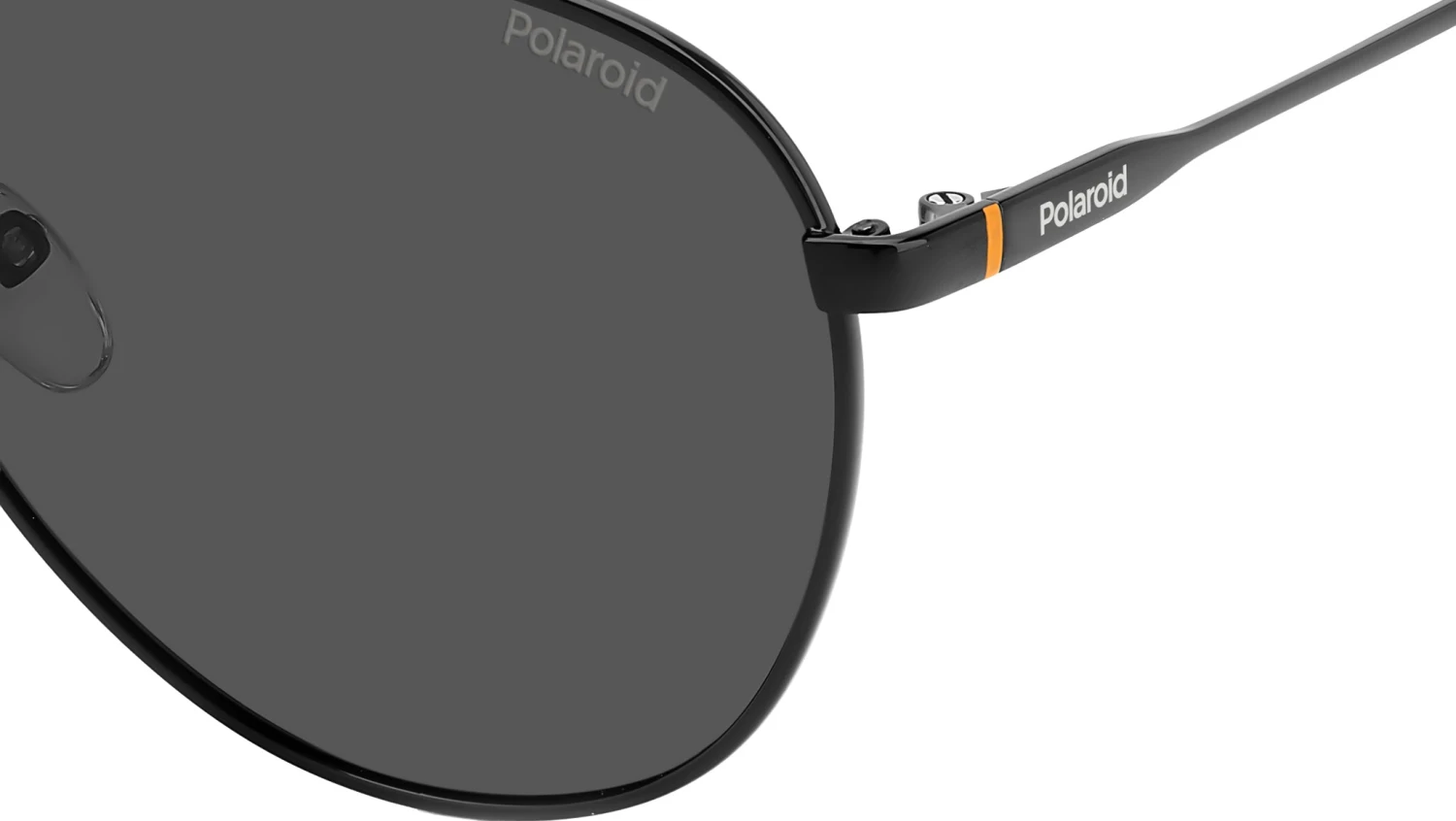 Polaroid PLD 4142/G/S/X 807 M9 sunglasses for men and women, featuring black pilot metal frame and grey polarized lenses. These aviator-front Polaroid men’s sunglasses feature a double bridge and comfortable nose pads for a snug fit. A coloured detail on the end piece and contrast-colour temple tips complete this Polaroid style, which can be fitted with prescription lenses. Brand line: Essential. Style code: 205710. Color code: 807 M9. Authorized Polaroid online reseller. Your glasses will include the original case and accessories and are covered by a 12-month global warranty.
