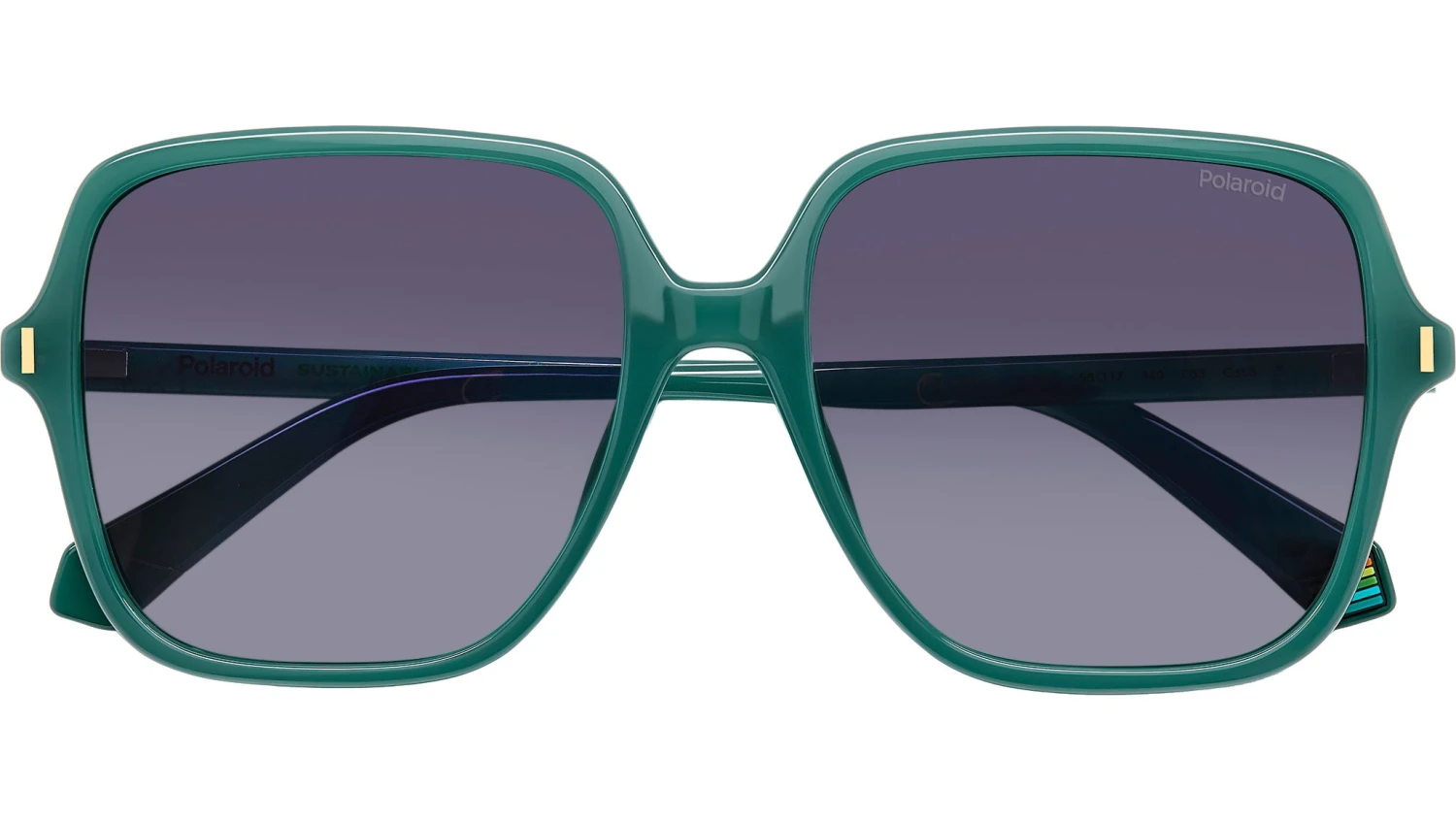 Polaroid PLD 6219/S 1ED WJ sunglasses for women, featuring green squared polycarbonate frame and grey shaded polarized lenses. Polaroid has rediscovered the delight that comes from square sunglasses, to be worn in any season. They’re invaluable thanks to the versatile silhouette, a delight to wear due to its slender proportions. The 3D printed detail on the front is an exquisite accent. The logo on the temples and the rainbow inserts on the inside of the end tips complete the look. Enough with inaction: the eco-polycarbonate structure attests to Polaroid’s green commitment. Brand line: Cool. Style code: 206721. Color code: 1ED WJ. Authorized Polaroid online reseller. Your glasses will include the original case and accessories and are covered by a 12-month global warranty.