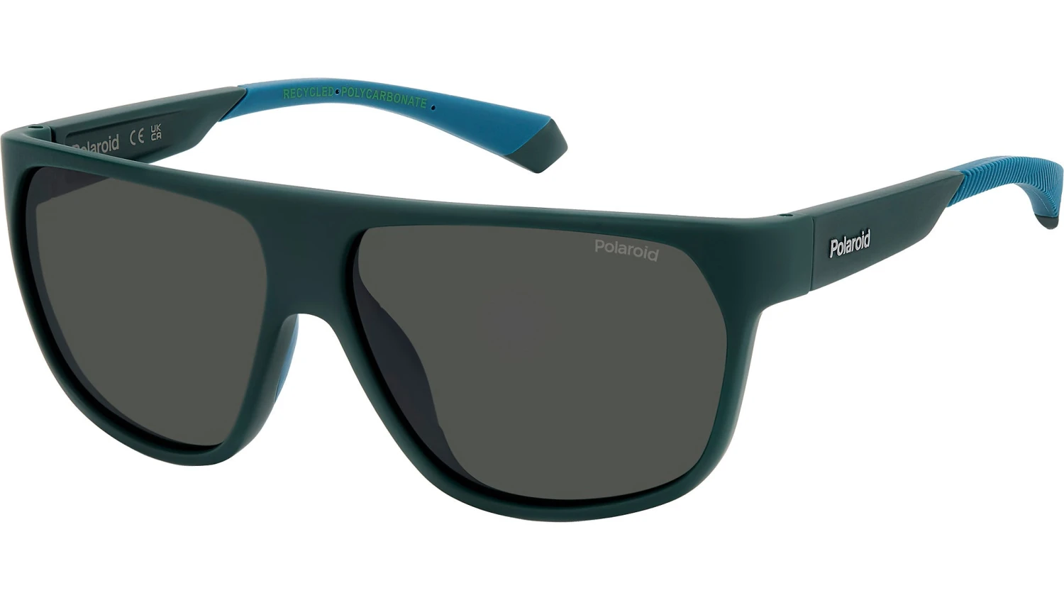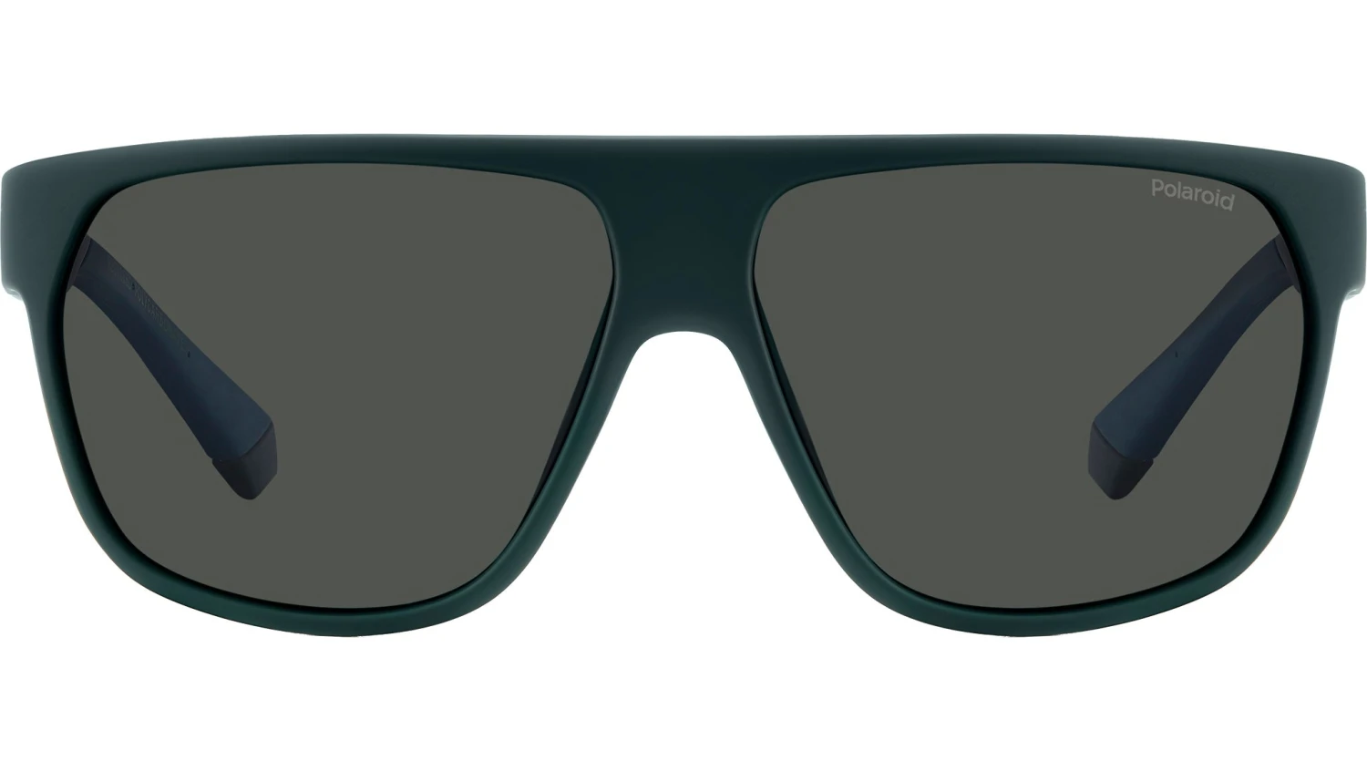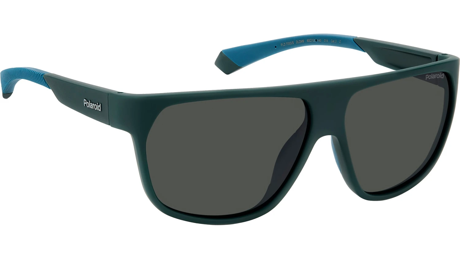 Polaroid PLD 7053/S DLD M9 sunglasses for men, featuring matte green rectangular polycarbonate frame and grey polarized lenses. Inspired by sport but designed to wear day after day. These men’s sunglasses by Polaroid make free movement possible, thanks to the full-coverage shape and temples with the stability of rubberised end tips, which are a delight to touch. The eyes are protected by polarized sun lenses, which even come in a mirrored version, for high-definition vision at all times. Brand line: Active. Style code: 207370. Color code: DLD M9. Authorized Polaroid online reseller. Your glasses will include the original case and accessories and are covered by a 12-month global warranty.