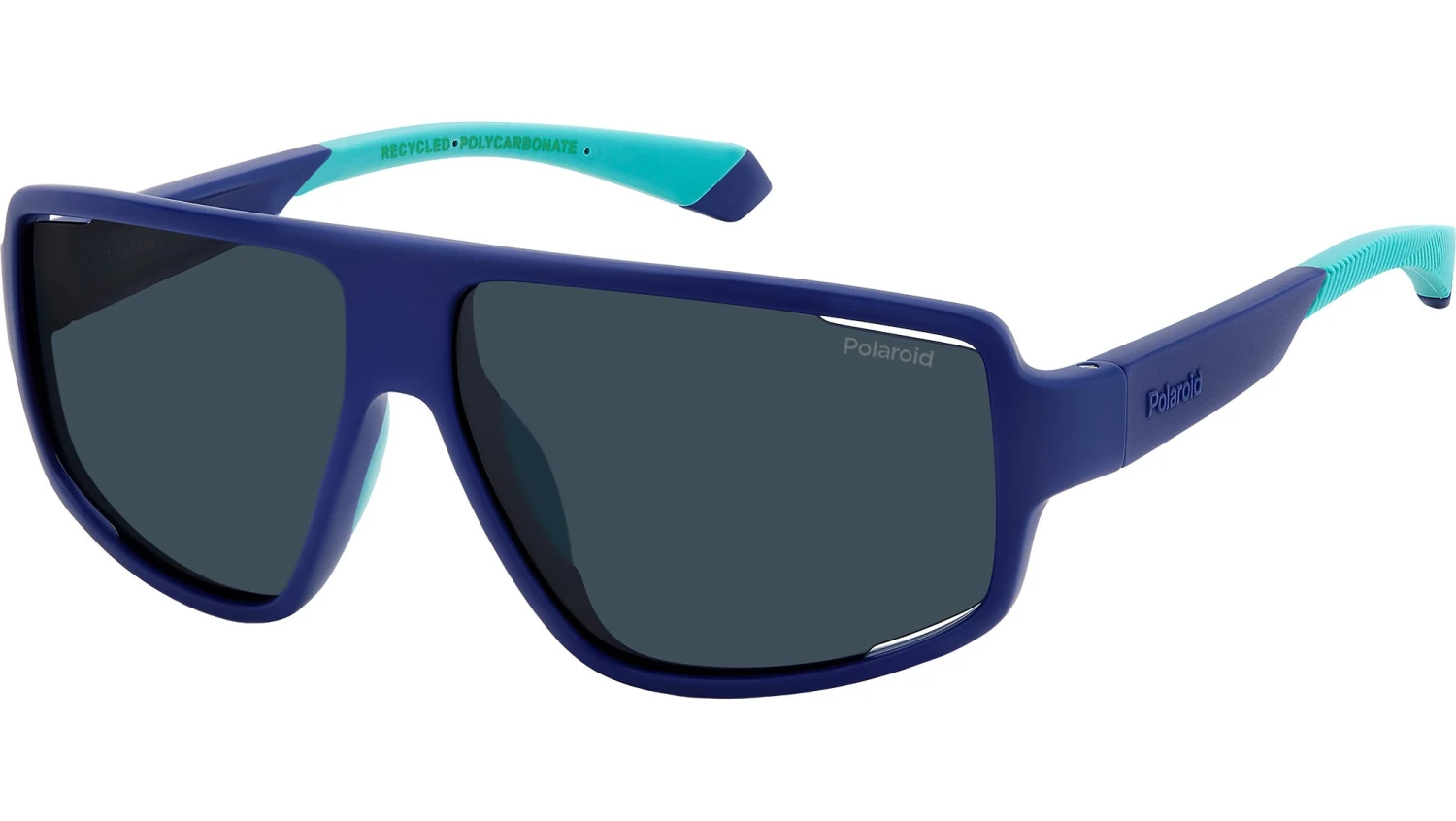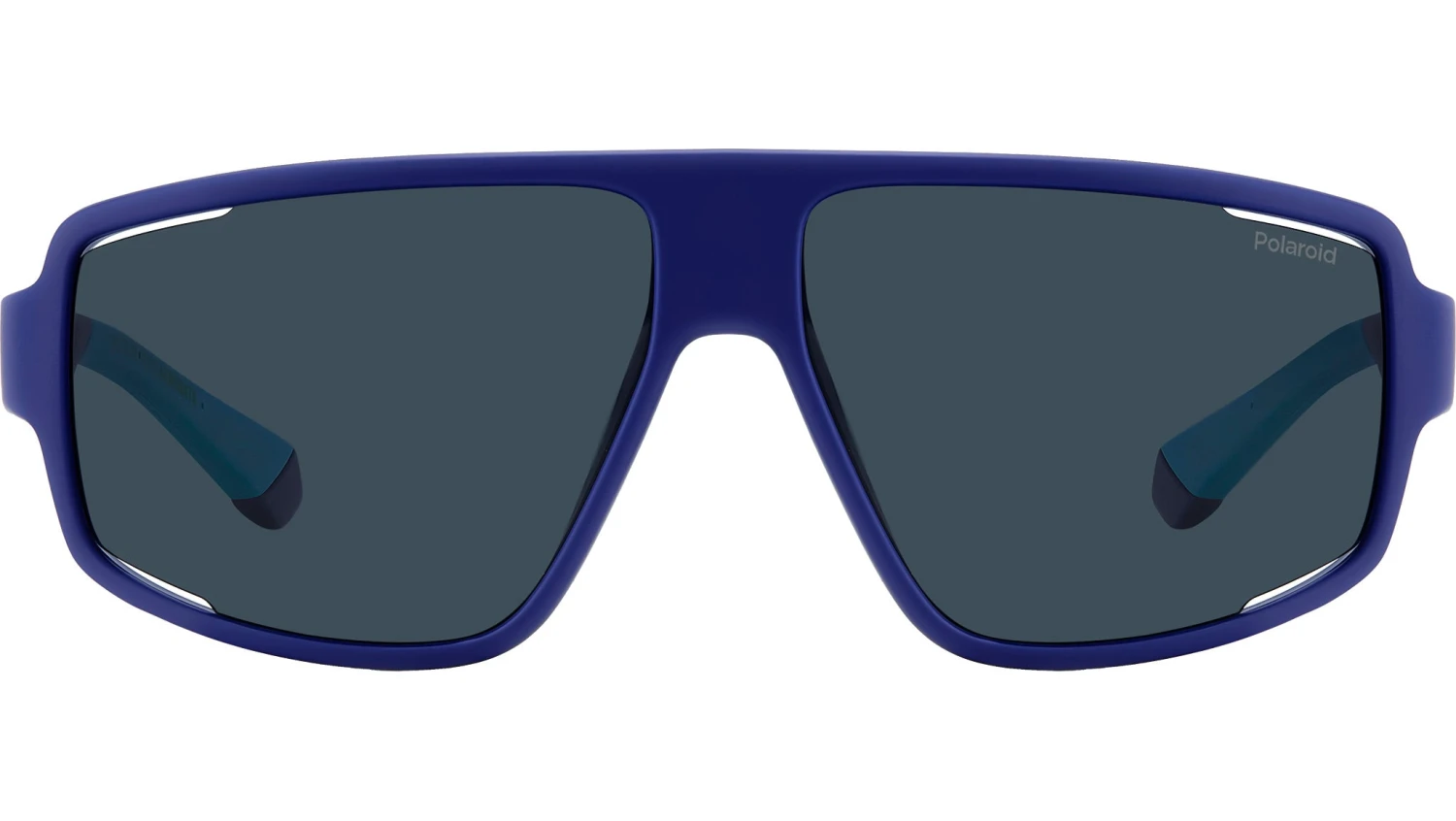 Polaroid PLD 7054/S FLL C3 sunglasses for men, featuring matte blue rectangular polycarbonate frame and blue polarized lenses. The love story between fashion and sport reaches new heights in these Polaroid sunglasses for men. Full-coverage and decisive, they look great with casual ensembles and can even downplay more formal ones. Their race-ready vibe comes from the openings on the lenses, borrowed from the world of athletic eyewear. The rubberised end tips with contrast details ensure stability – not to mention the cool factor required by everyday champions. Brand line: Active. Style code: 207371. Color code: FLL C3. Authorized Polaroid online reseller. Your glasses will include the original case and accessories and are covered by a 12-month global warranty.