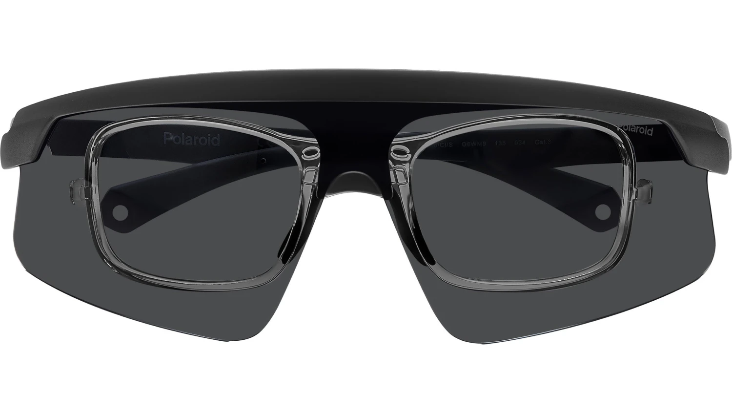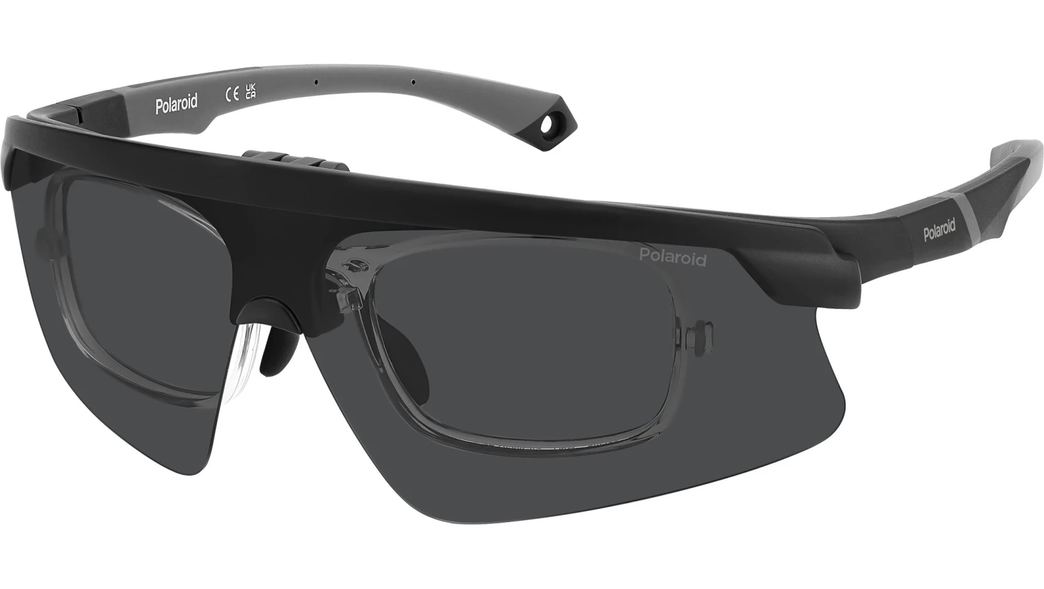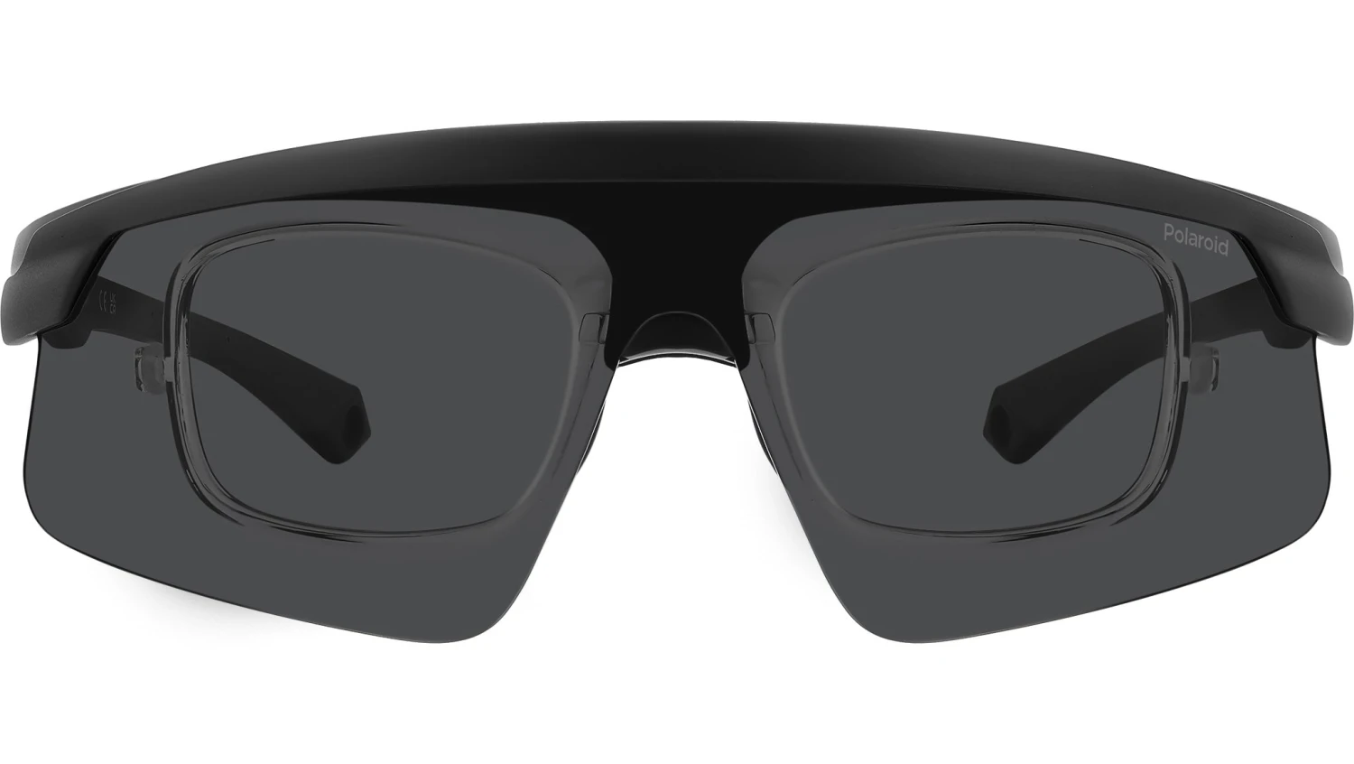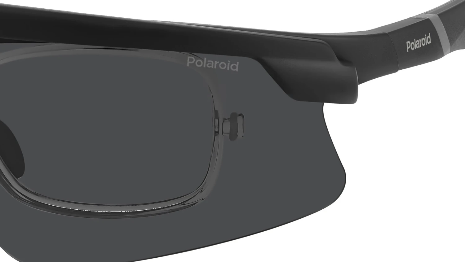 Polaroid PLD 7056/CI/S O6W M9 sunglasses for men, featuring matte black grey rectangular polycarbonate frame and grey polarized lenses. These aerodynamic and high-tech Polaroid sunglasses ride one of the most up-to-date trends in sportswear today. They’re composed of a full-coverage frame which rests on rubberised nose pads and end tips for reliable grip. The sun lenses can be raised with a simple movement, revealing the optical lenses below. These glasses can be completed by an elastic strap, purchased separately, which conveniently fits into the openings on the end tips. Brand line: Active. Style code: 207377. Color code: O6W M9. Authorized Polaroid online reseller. Your glasses will include the original case and accessories and are covered by a 12-month global warranty.