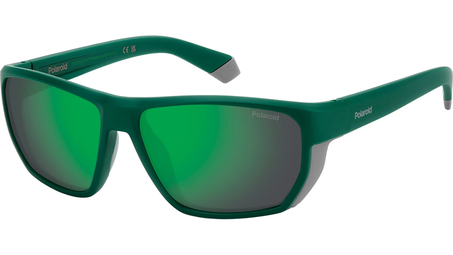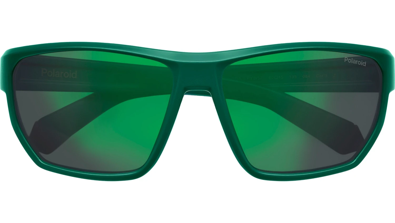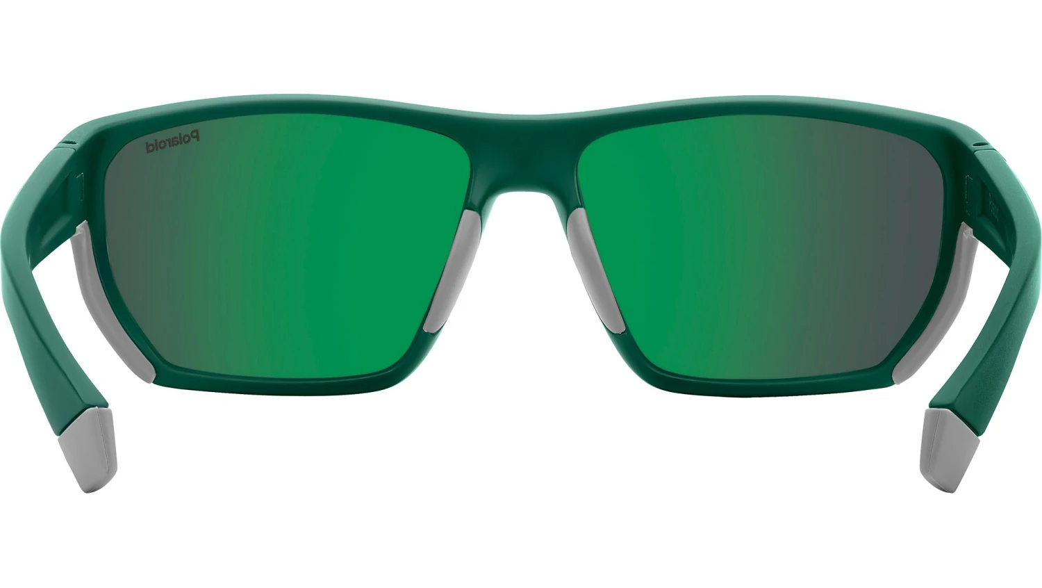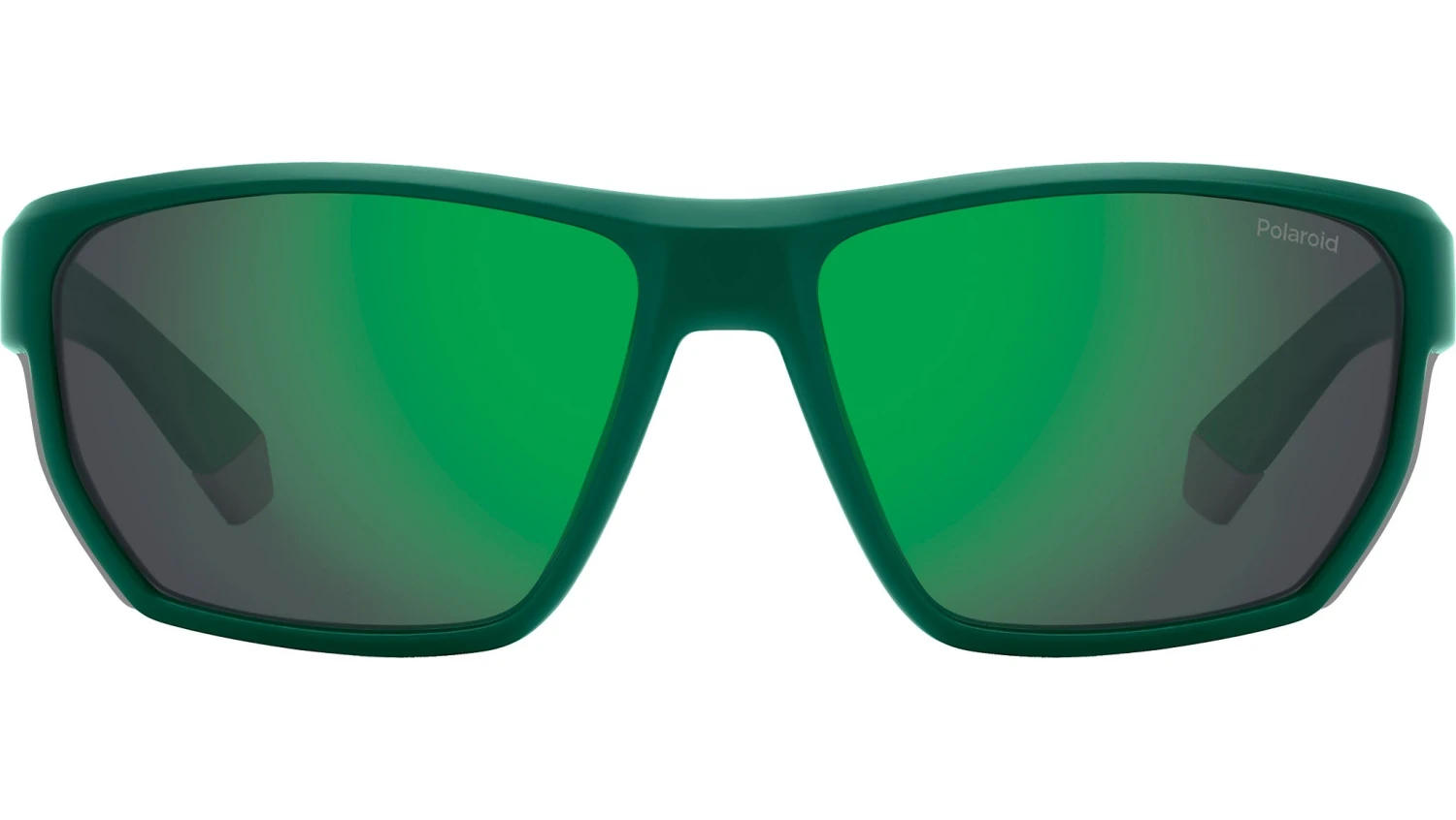 Polaroid PLD 7057/S PYW 5Z sunglasses for men, featuring matte teal rectangular polycarbonate frame and greygreen mirror polarized lenses. As bold as victory on the pitch, these Polaroid sunglasses infuse even basic outfits with a shot of adrenaline. With full and ample coverage, the font with lateral spoilers provides extra protection from light and glare. They stay in place thanks to the high-grip rubber nose pads, stable even while running on the beach or riding a bicycle. They also come in versions with mirrored or multi-layer lenses. Flawless with a track suit, bold with more formal attire. Unforgettable always. Brand line: Active. Style code: 207859. Color code: PYW 5Z. Authorized Polaroid online reseller. Your glasses will include the original case and accessories and are covered by a 12-month global warranty.