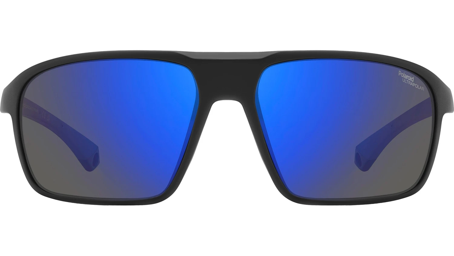 Polaroid PLD 7058/S 0VK QG sunglasses for men, featuring matte black blue rectangular polycarbonate frame and blue mirror polarized high contrast lenses. Style and performance: these Polaroid sunglasses are flawless on any occasion. Numerous technical qualities make them a must have. Starting from the full-coverage structure, coated in soft rubber on the inside for added grip and comfort. The holes in the end tips make it possible to add an elastic cord and thus reach peak freedom of movement. The ultrapolar lenses offer sharp vision and crisp colours. Brand line: Active. Style code: 207856. Color code: 0VK QG. Authorized Polaroid online reseller. Your glasses will include the original case and accessories and are covered by a 12-month global warranty.