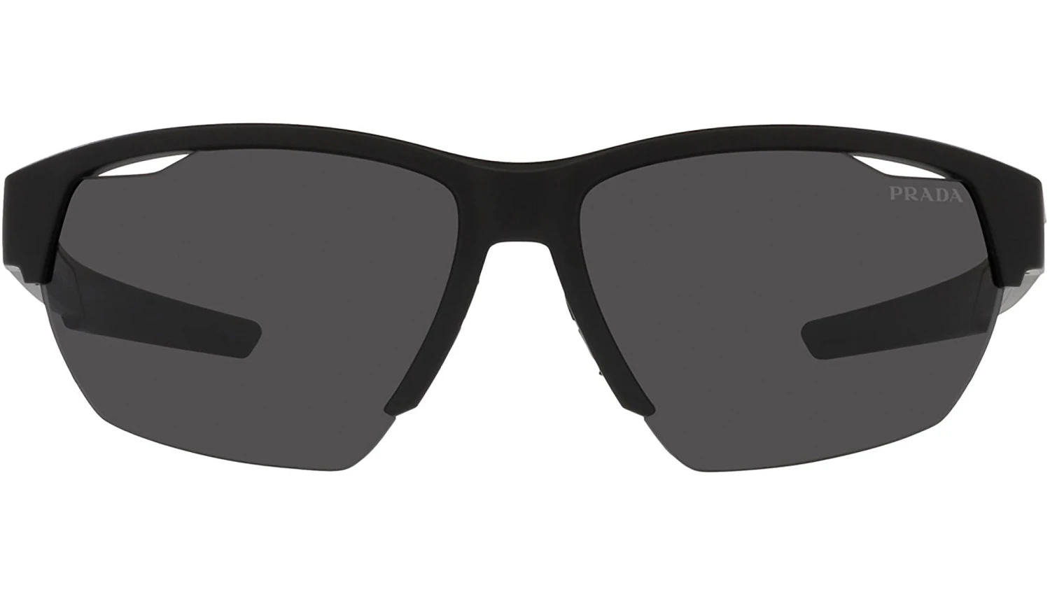 Prada Linea Rossa sunglasses model PS03YS matte black frame variant, color code 1BO06F with dark grey lens. Prada Linea Rossa Sun Collection conveys an everyday casual style with all the quality and craftsmanship of the Prada brand.
