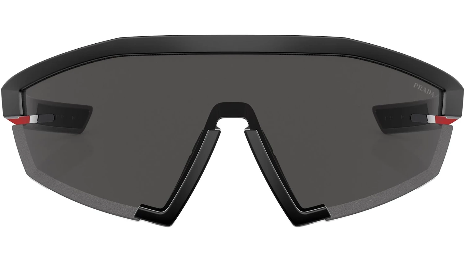 Prada Linea Rossa sunglasses model PS 03ZS color code 1BO06F featuring matte black rimless injection frame and polyamide dark grey lenses. Authorised Prada Linea Rossa Store. Your sunglasses will come including the original case and accessories and will be covered by 12 month global warranty.