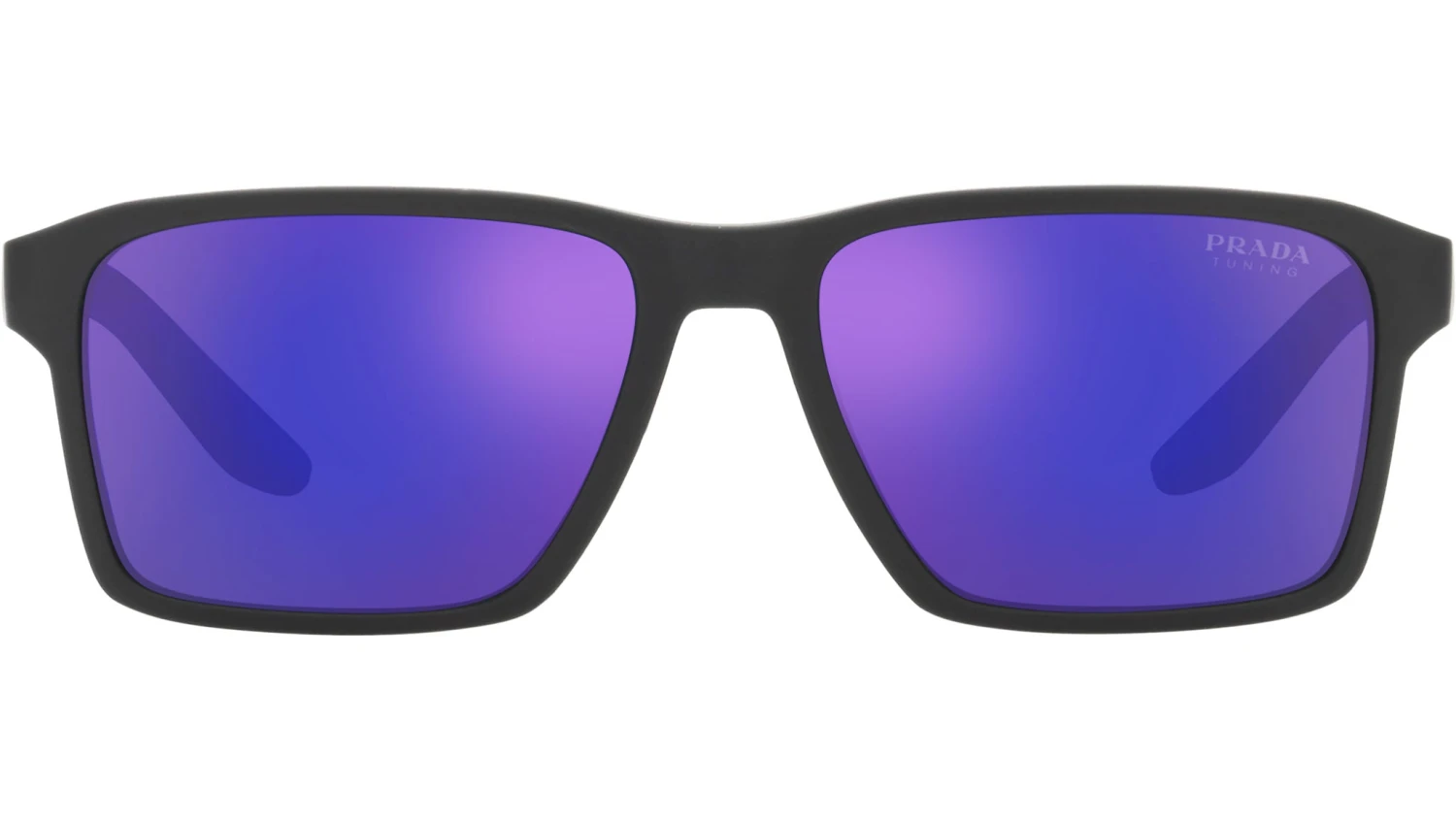Prada Linea Rossa sunglasses model PS 05YS color code UFK05U featuring grey rubber full rim injection frame and polycarbonate dark blue mirror violet lenses. Authorised Prada Linea Rossa Store. Your sunglasses will come including the original case and accessories and will be covered by 12 month global warranty.