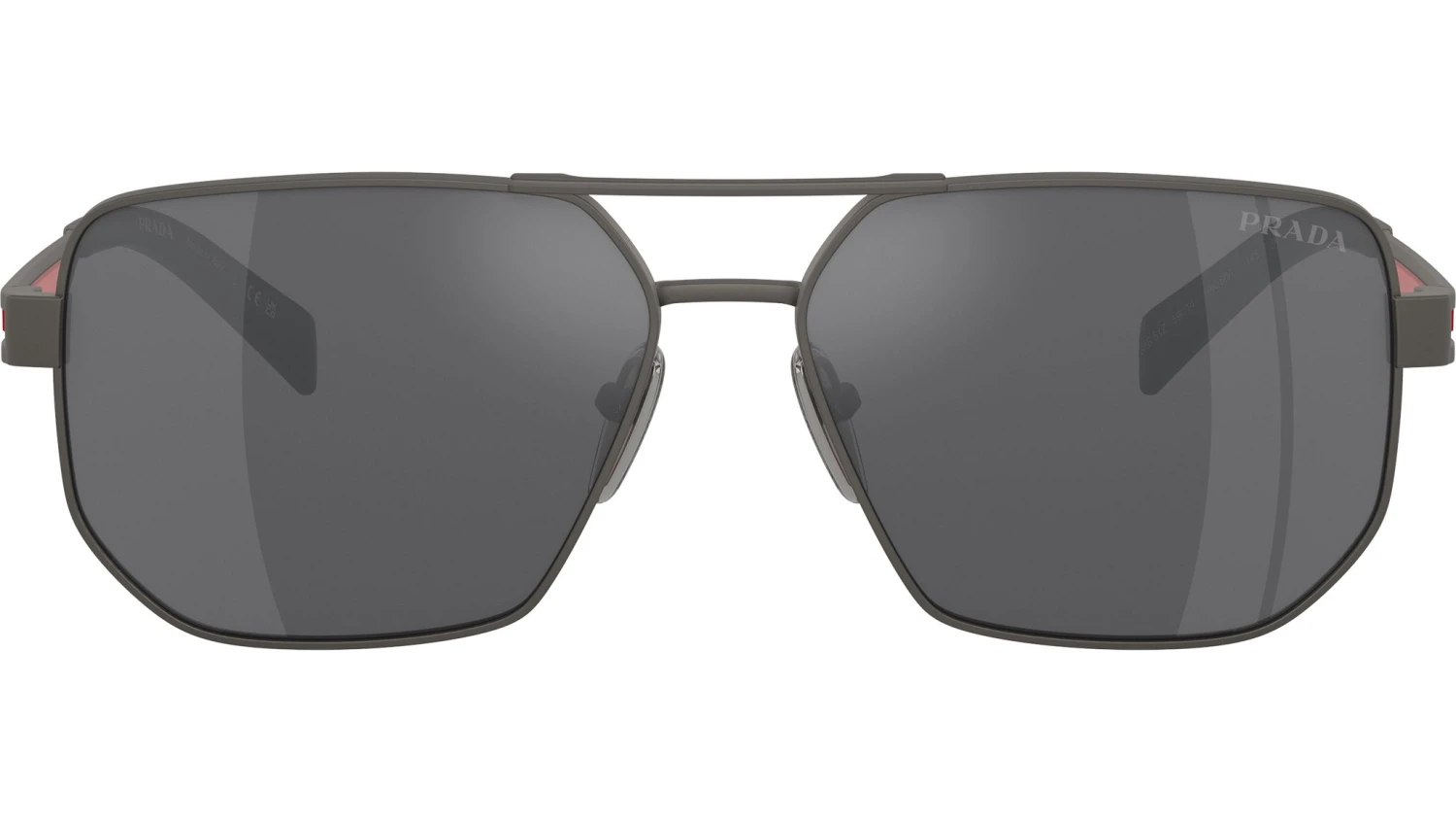 Prada Linea Rossa sunglasses model PS 51ZS color code 19K60A featuring matte gunmetal full rim metal frame and polyamide grey mirror silver lenses. Authorised Prada Linea Rossa Store. Your sunglasses will come including the original case and accessories and will be covered by 12 month global warranty.