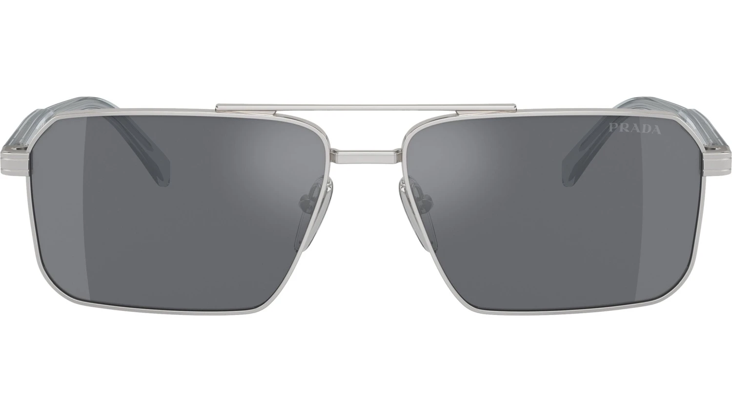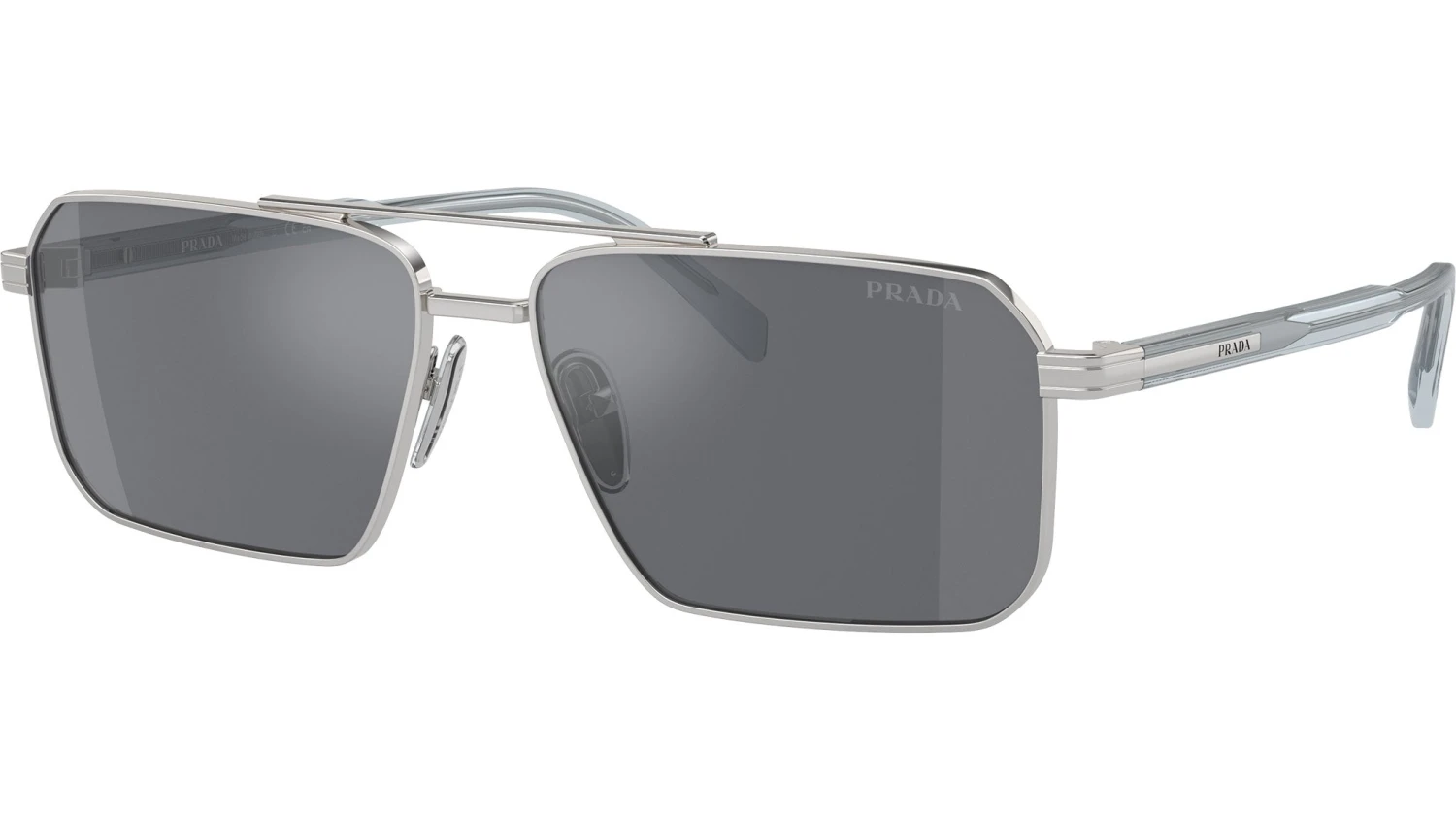 Prada sunglasses for men model A57S featuring silver full rim stainless steel frame and base 2 dark grey flash silver lens. adjustable nosepads. Frame line: Signature. Brand code: PRA57S. Color code: 1BC175. Authorised Prada Online Reseller. Your glasses will come including the original case and accessories and will be covered by 12 month global warranty.