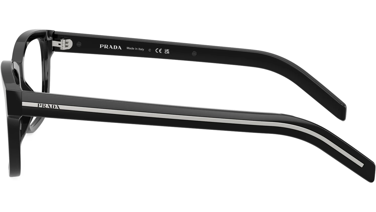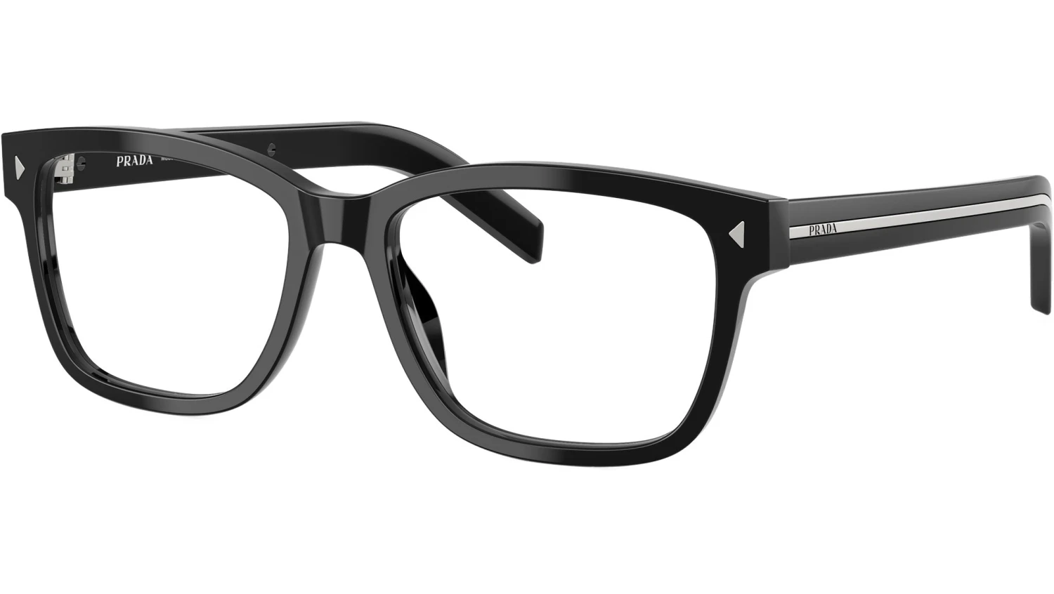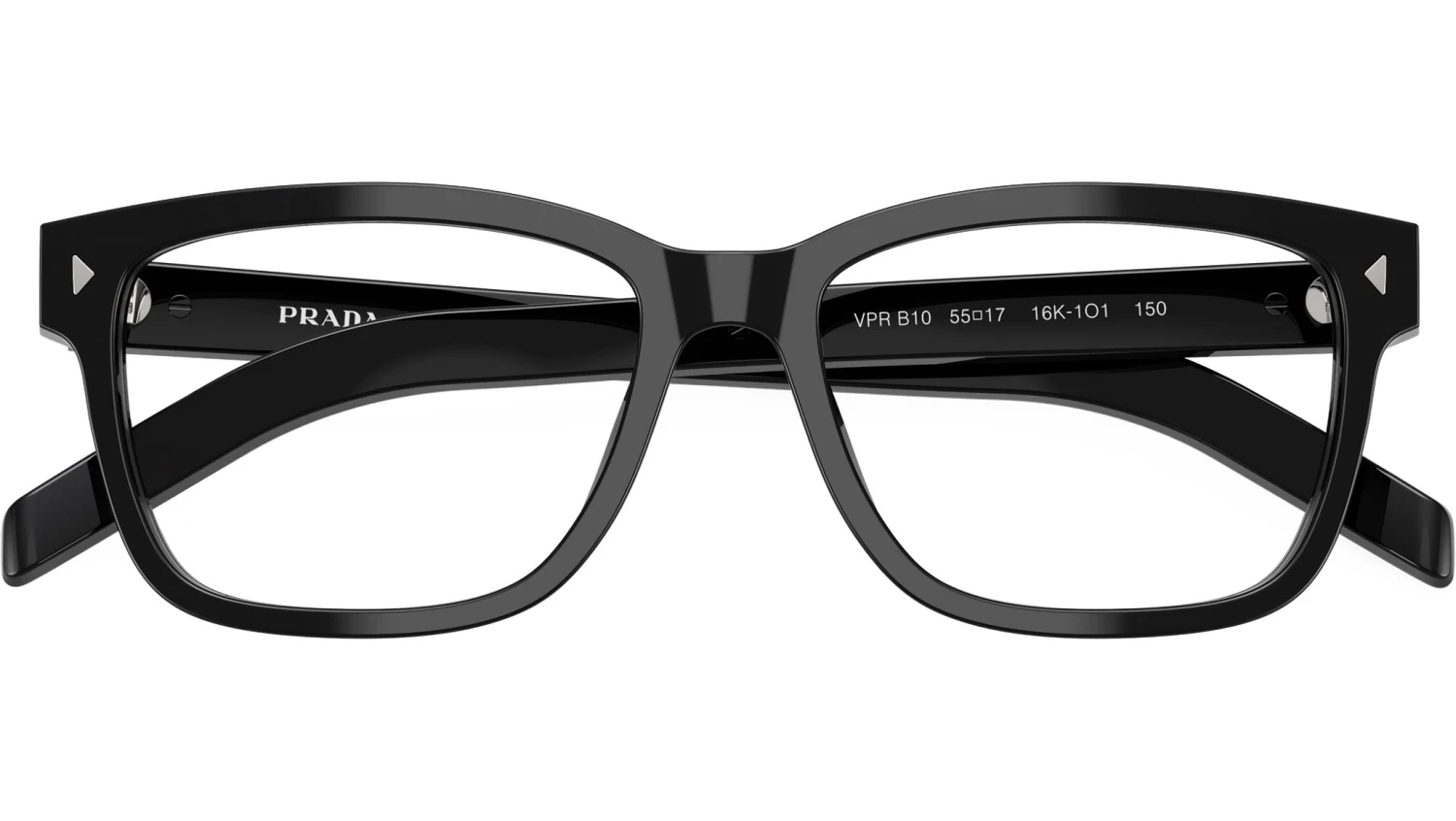 Prada PR B10V 16K1O1 glasses for men, featuring black rectangular acetate frame and demo lens . High bridge fit. Brand line: Signature. Style code: PRB10V. Color code: 16K1O1. Made in Italy. Authorized Prada online reseller. Your glasses will include the original case and accessories and are covered by a 12-month global warranty.