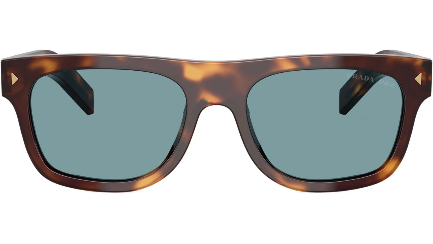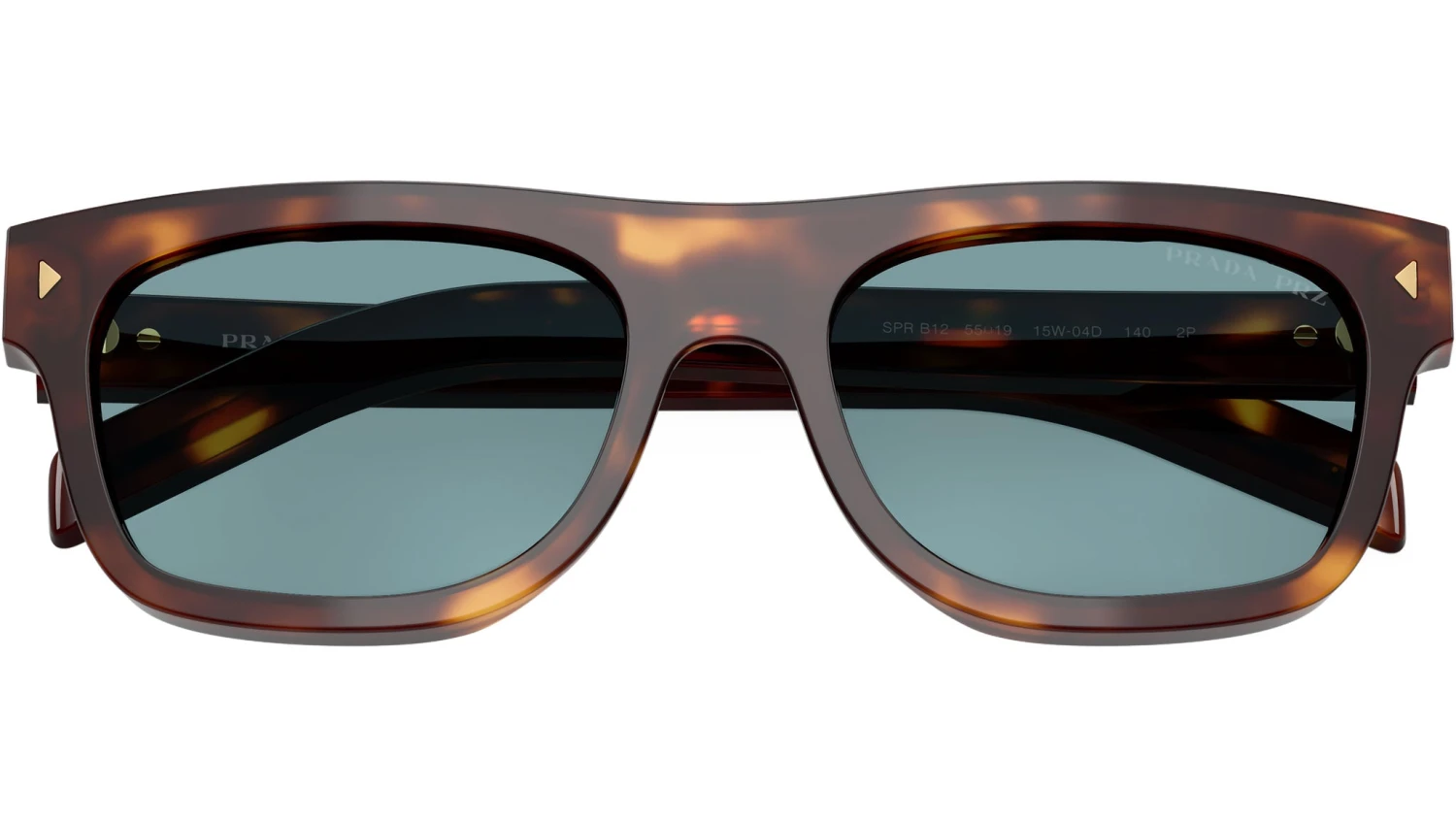 Prada PR B12S 15W04D sunglasses for men, featuring classic tortoise d-frame acetate frame and green polar glass lenses. High bridge fit. Brand line: Signature. Style code: PRB12S. Color code: 15W04D. Made in Italy. Authorized Prada online reseller. Your glasses will include the original case and accessories and are covered by a 12-month global warranty.