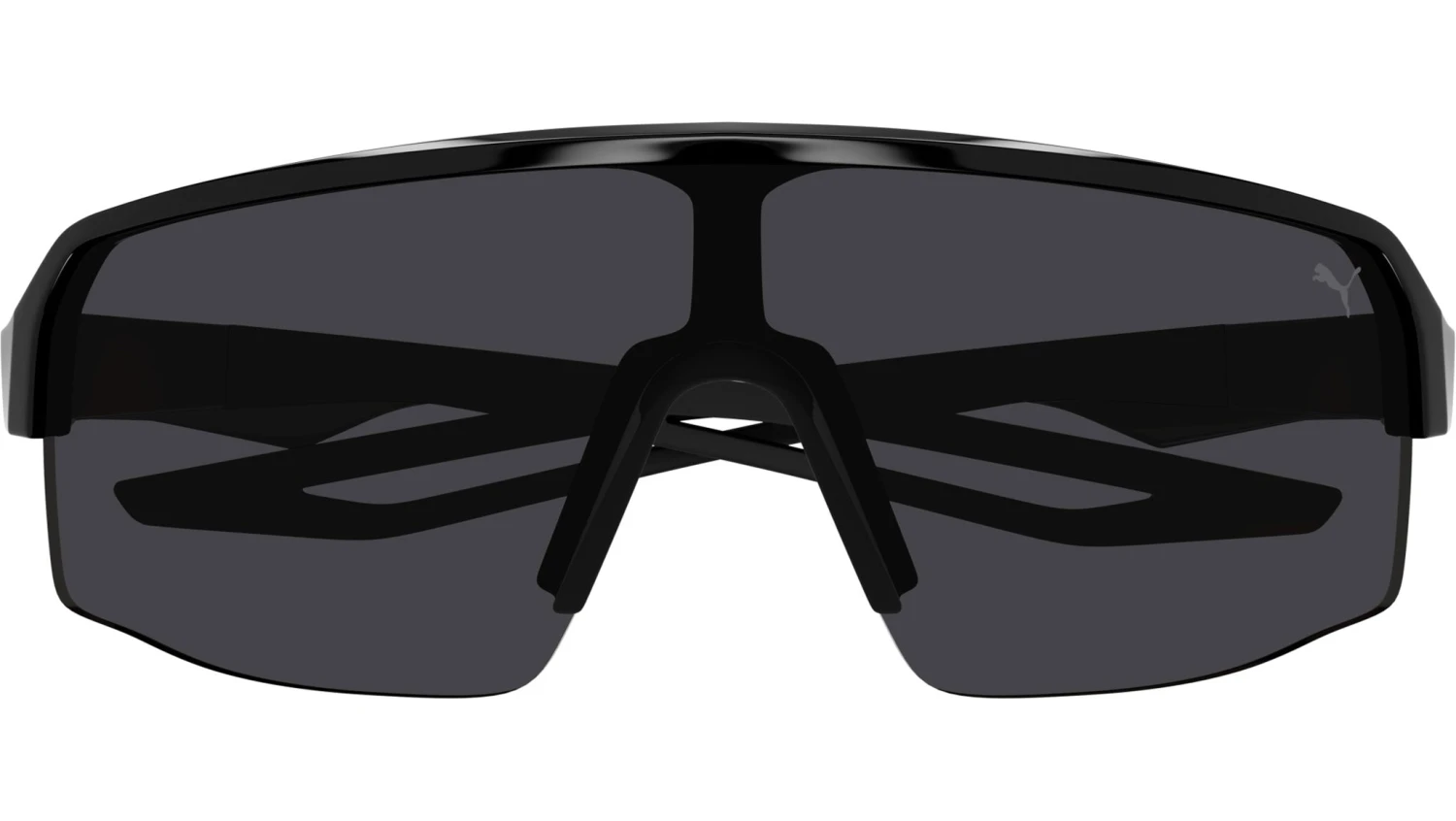 Puma Eyewear Performance collection sunglasses model PU0399S color code 001 featuring shiny black frame and solid smoke lens. Puma Eyewear merges performance and trends, innovation and fashion, sport and lifestyle, for those who see beyond trends and challenge the norm to move things forward.