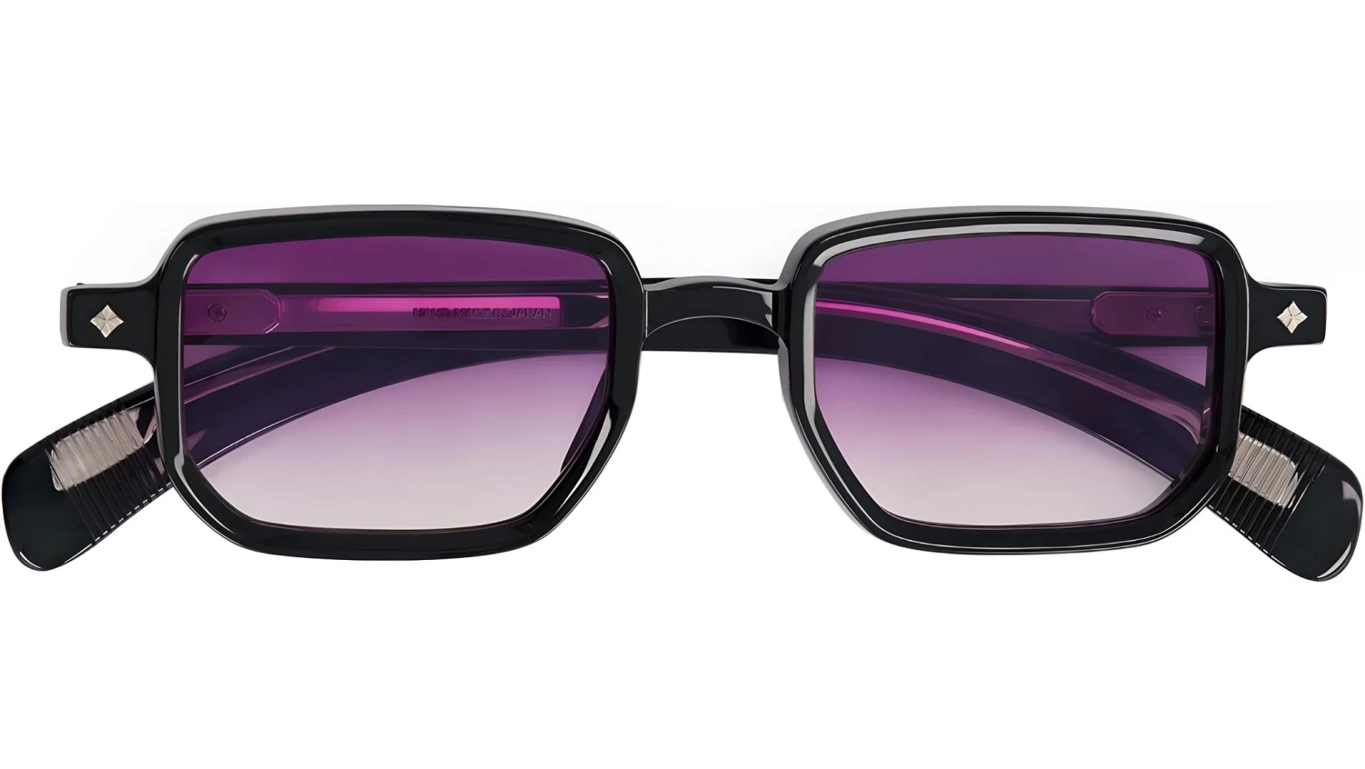 Sato Eyewear sunglasses model Ran N-1 featuring noir Japanese acetate with noir insert and gradient purple lenses. The Ran Collection embodies the spirit of wide-open journeys and unexplored horizons. These frames are your ticket to an adventure that’s both wild and enigmatic.