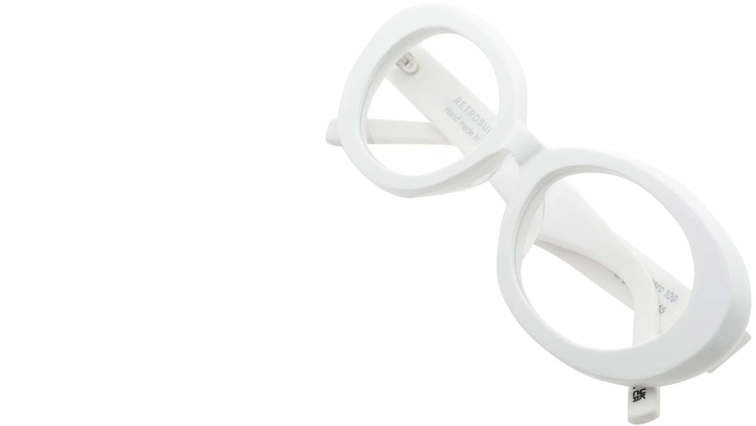 Numero 109 by Retrosuperfuture is a playful contemporary shape characterised by an ovaloid profile and distinctive curved rims. A modern reinterpretation of 90s cut frames, this is a unique silhouette for everyday use. Its sturdy construction has been sculpted on the sides for lightness, ensuring a comfortable fit for everyday use and highlighting RSF’s impeccable craftsmanship. Numero 109 comes in a bold solid white acetate that elevates its rounded form. Sizes: R Lens Width: 53 mm. Frame Front: Frame Side: 145 mm. Product Code Size R: GF2