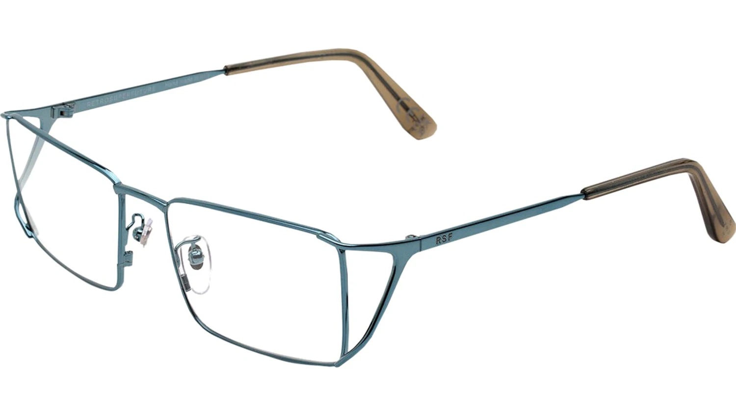 An elevated version of an essential metal frame, Numero 115 is a modern geometric silhouette. The shape has a unique architectural quality, with its squared lenses held together by an innovative metal construction: a fork-like design on the temples crafted from tubular steel highlights RSF’s exceptional know-how in eyewear manufacture. This is a visually sharp yet wearable Optical frame that comes in a unique chromed teal finish. Sizes: R Lens Width: Frame Front: Frame Side: Product Code Size R: 3VB