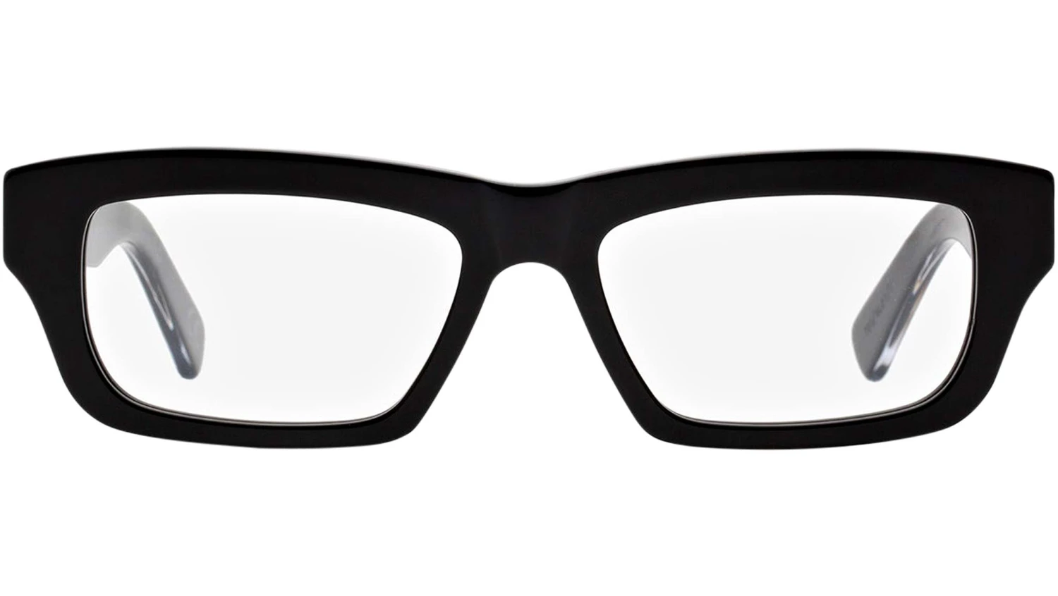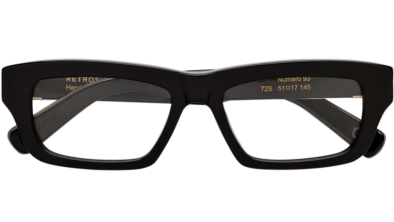 N93 is a timeless Optical silhouette characterised by a timeless feeling. An archetype of classic 1960s menswear frames, the model features geometric acetate construction with a sturdy nose-bridge and unique detailing on the temples. N93 comes in a sleek black finish elevated by golden decors and detailing on the temples. Sizes: R Lens Width: 51 mm. Frame Front: Frame Side: 145 mm. Product Code Size R: 72S