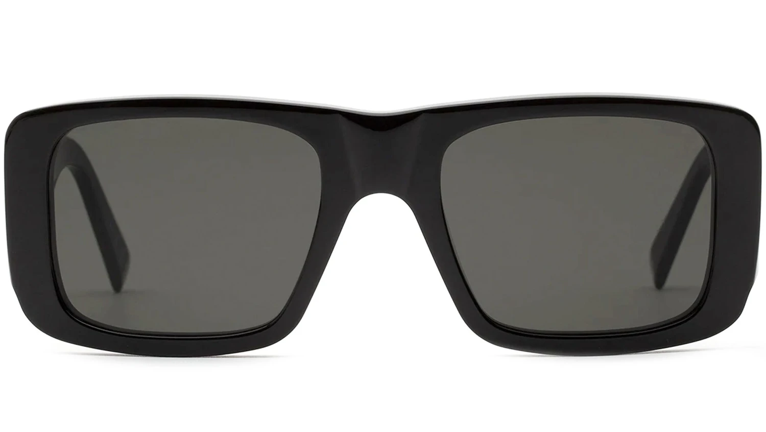 A key RSF statement piece, Onorato is a model inspired by 1970s references, from Aristotle Onassis to Miles Davis. A bold acetate frame with a sturdy, oversized design, Onorato features a straight upper line and a bold nose-bridge. Thick acetate rims curve around the temples match its distinctive wide temple tips. Oversized and with a street edge, this version comes with black acetate and matching lenses.