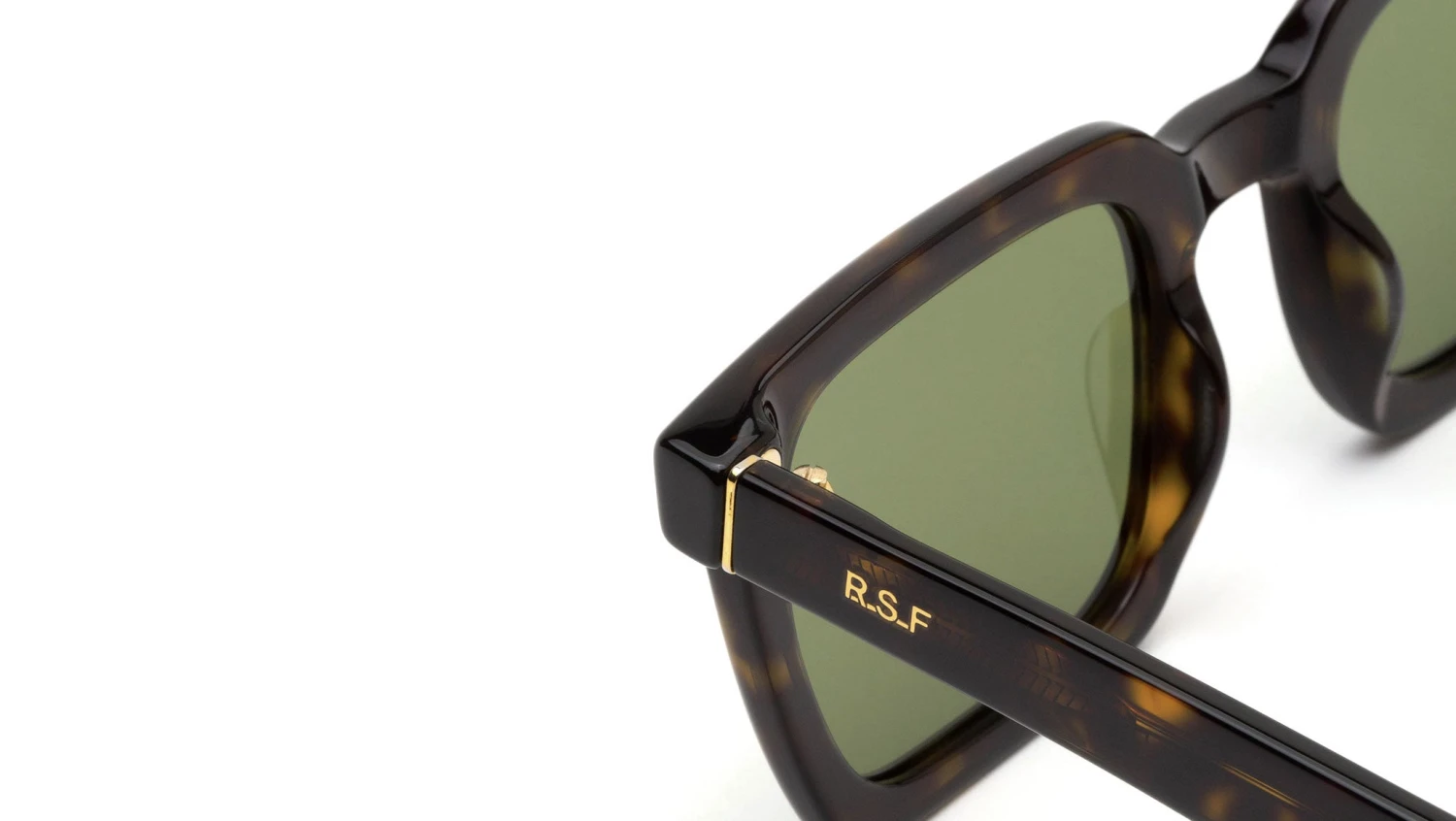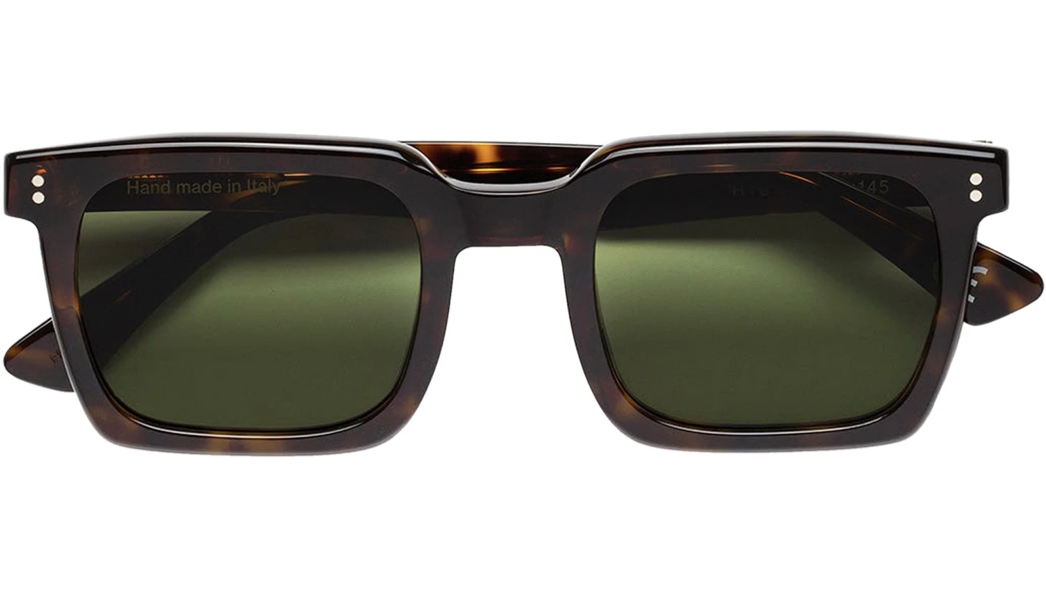 Secolo is an essential geometric silhouette with a distinctive architectural quality, where precise angles of the frame are balanced with its rounded lenses. This is an uncompromising, yet fitting shape for those looking for elegant, squared sunglasses with a unique modernist character. Its apparent simplicity and aesthetic purity conceal carefully crafted details, such as its pointed temple tips and sharp angular detailing on the temples. Secolo comes in a vibrant 3627 Havana acetate with bottle green lenses.