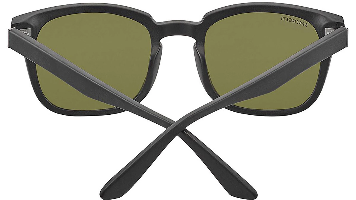 Serengeti Ethan sunglasses featuring matte black rectangular bio acetate frame and green lenses. The ETHAN sunglasses exemplify a blend of simplicity and sophistication with their modern squared shape and structural edges, lending a retro flair that makes them a distinctive statement piece. This unisex design reflects the Serengeti Heritage through its eco-friendly handmade acetate construction and iconic mineral lenses. Featuring Mineral Polarized 555nm lenses with a lens category of 3, a base curve of 6, and a medium fit, these sunglasses are made in Italy. Key lens features include ultra-light mineral material, photochromic technology, polarized protection, spectral control, and an anti-reflective coating. Style code: SS575. Color code: 007. Authorized Serengeti online reseller. Your glasses will include the original case and accessories and are covered by a 12-month global warranty.
