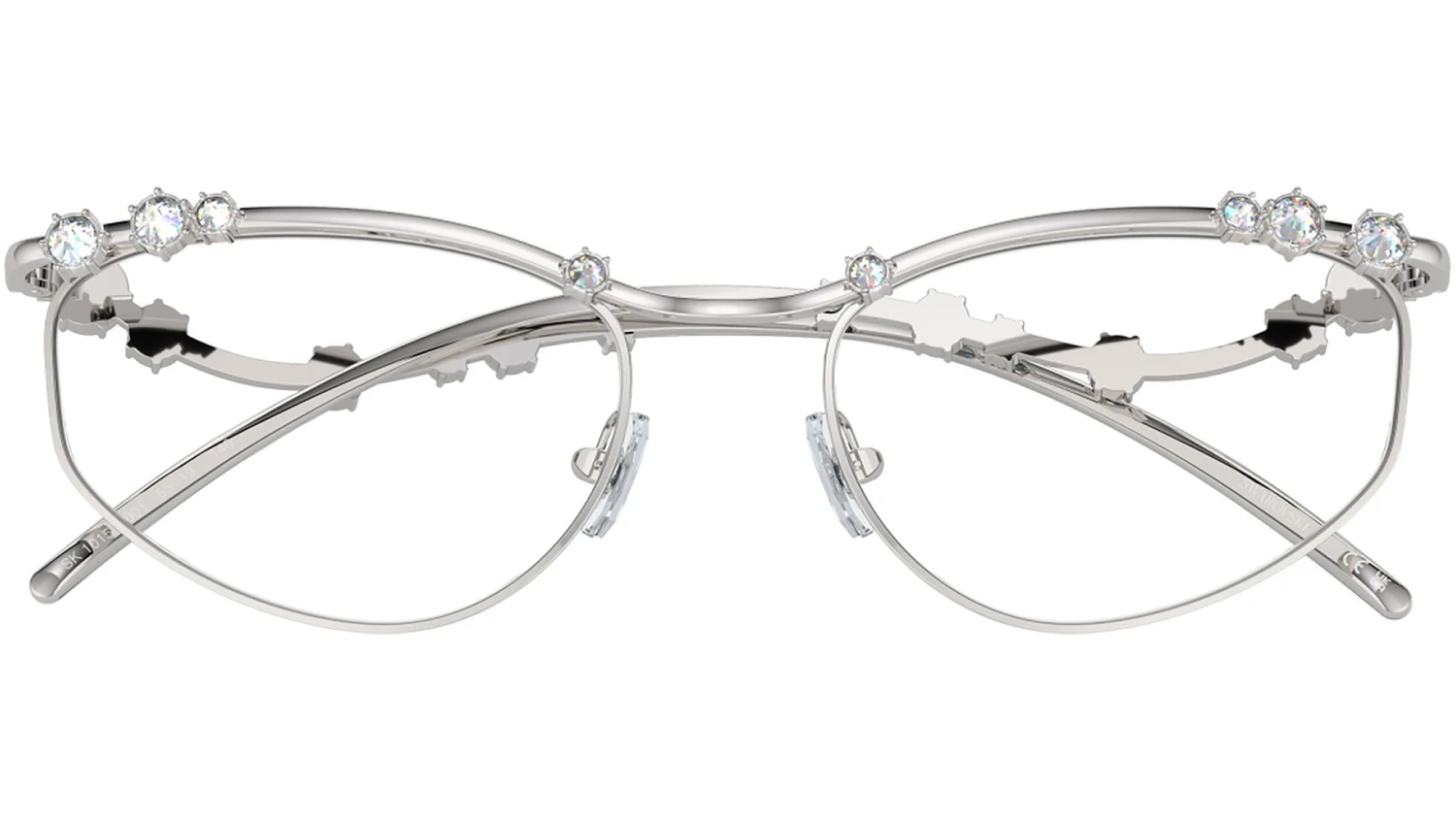 Swarovski optical frame for women model 1015 featuring silver full rim metal frame and base 4 demo lens. Adjustable nosepads. Frame line: Science of Elegance. Brand code: 0SK1015. Color code: 4001. Authorised Swarovski Eyewear Online Reseller. Your glasses will come including the original case and accessories and will be covered by 12 month global warranty.