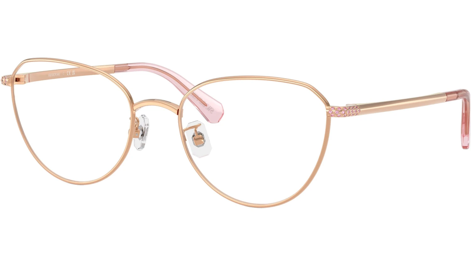 Swarovski SK1029D 4014 glasses for women, featuring rose gold round metal frame and demo lenses. Low bridge fit. Brand line: Science of Facets. Style code: SK1029D. Color code: 4014. Authorized Swarovski online reseller. Your glasses will include the original case and accessories and are covered by a 12-month global warranty.