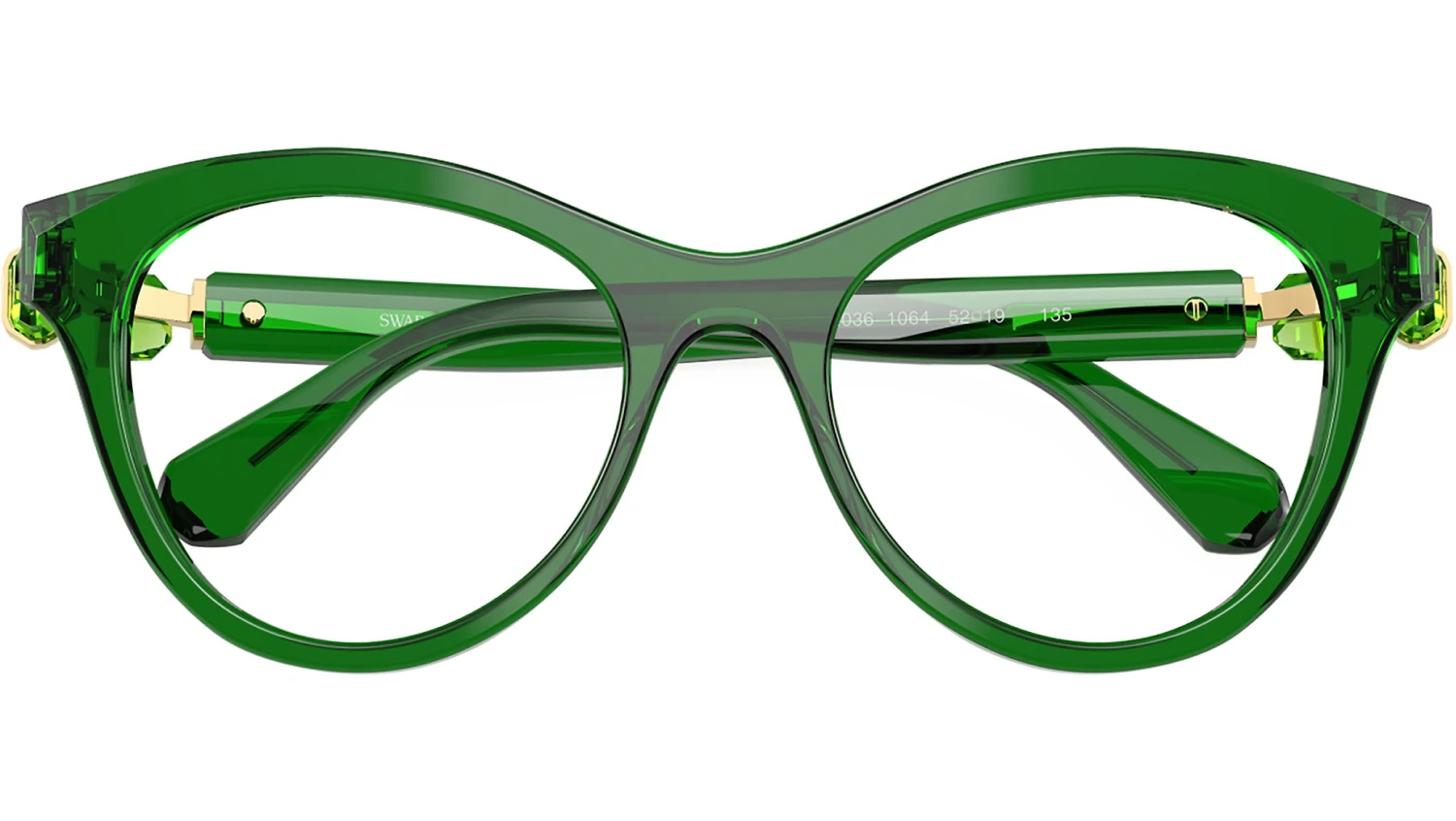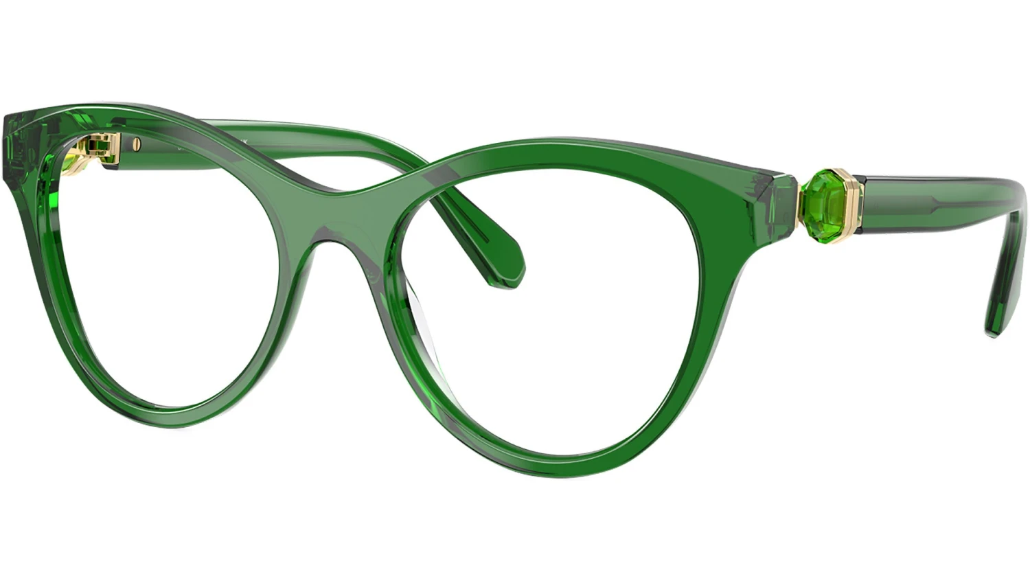Swarovski optical frame for women model 2036 featuring transparent green full rim acetate frame and base 4 demo lens. High bridge fit. Frame line: Science of Facets. Brand code: 0SK2036. Color code: 1064. Authorised Swarovski Eyewear Online Reseller. Your glasses will come including the original case and accessories and will be covered by 12 month global warranty.