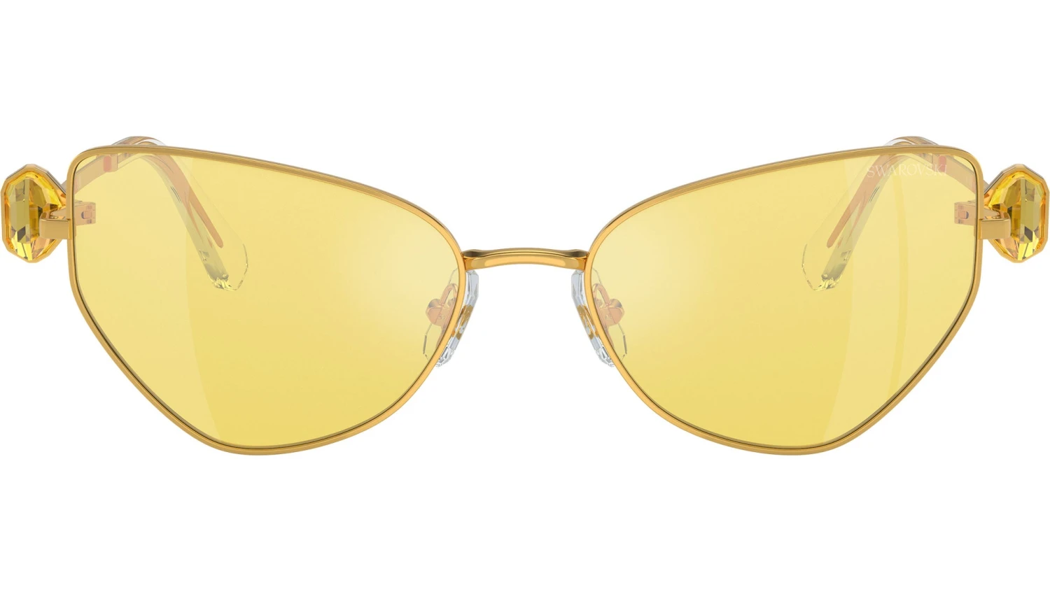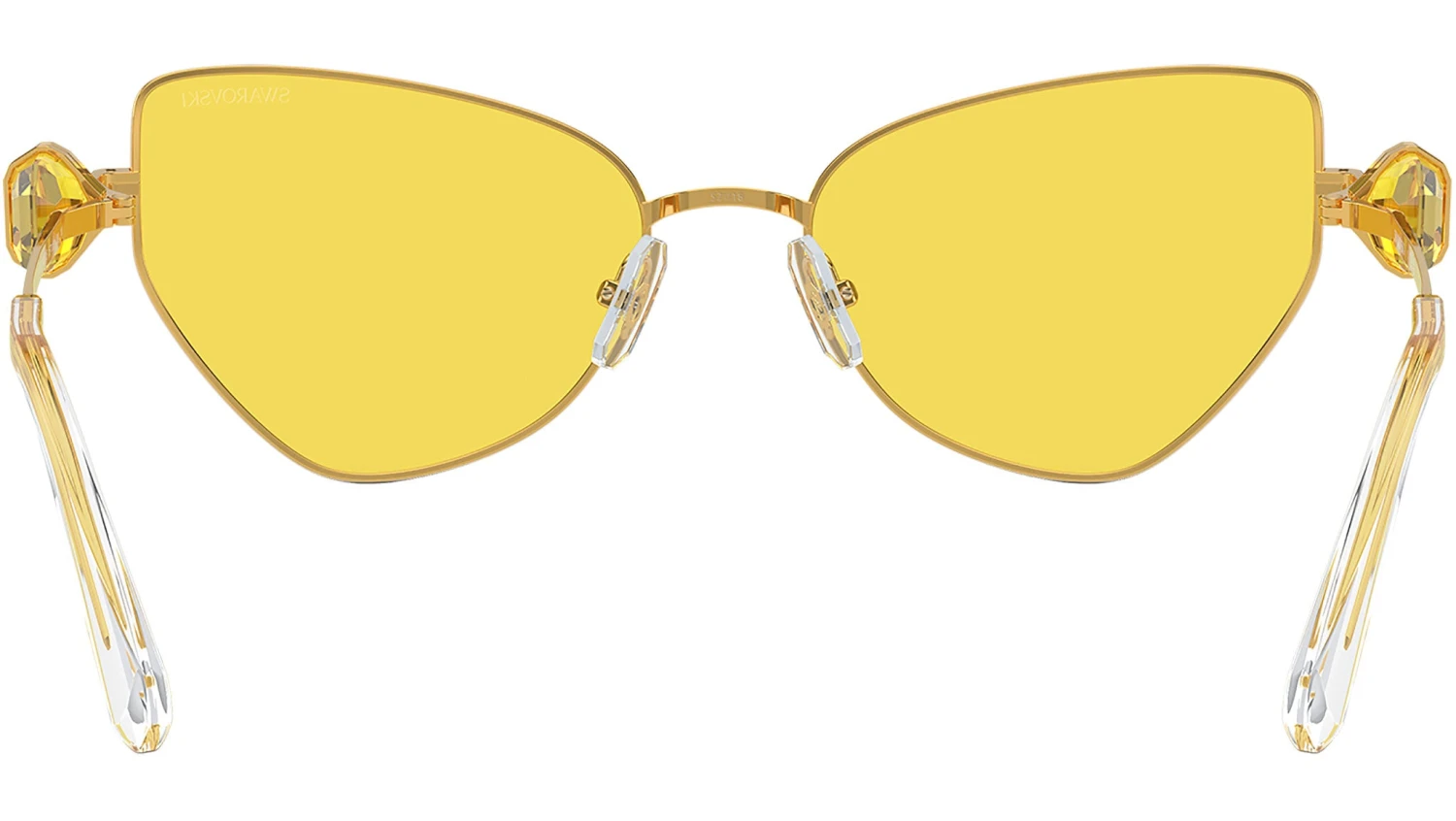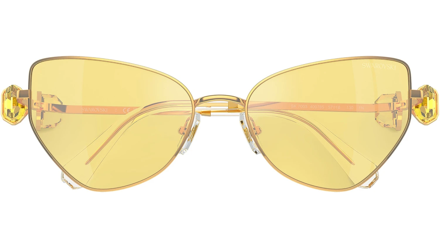 Swarovski sunglasses for women model 7003 featuring gold full rim metal frame and base 4 yellow flash silver lenses. Universal fit. Frame line: Science of Facets. Brand code: 0SK7003. Color code: 400785. Authorised Swarovski Eyewear Online Reseller. Your glasses will come including the original case and accessories and will be covered by 12 month global warranty.