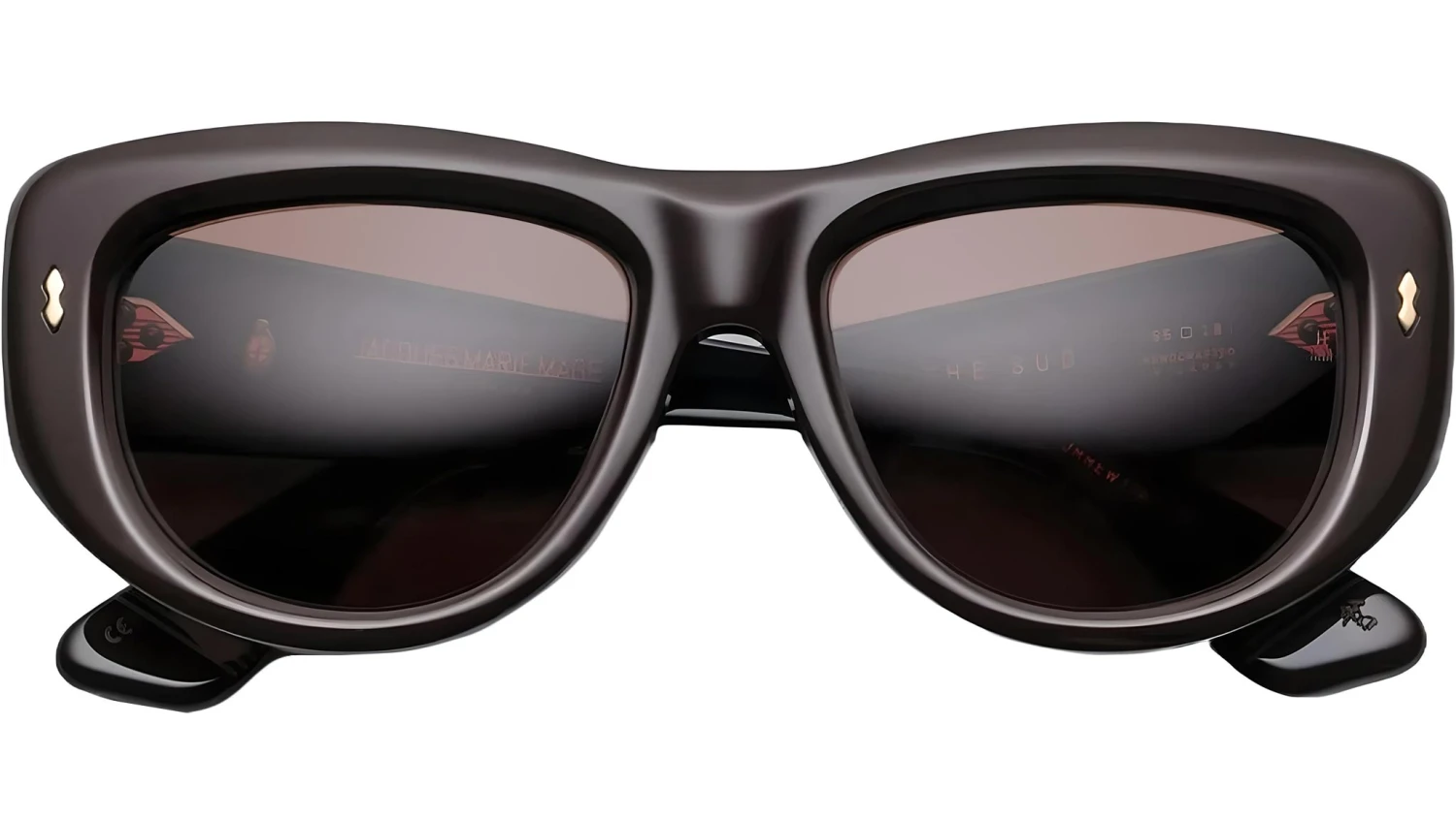 A timeless tourer from the Erin Wasson for JMM collection, now available in “Eve”, a Dark Walnut color concept inspired by American visual artist and author Eve Babitz. The softly sloped, sculptural frame is complemented by Choco lenses and signature Dark Gold metal embellishments, including double-arrowhead front pins, spur-shaped rivets, ‘Cantilever’ wirecores with hairline details, and temple tips featuring a crest of Marseille.