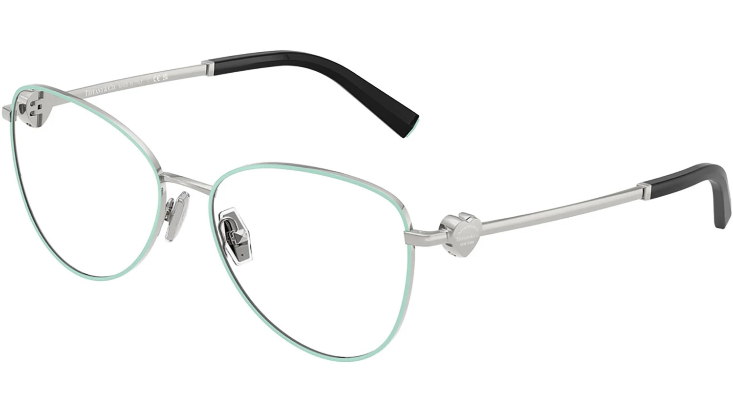 Tiffany optical frame for women model 0TF1163B featuring Tiffany blue on silver full rim stainless steel frame and base 4 demo lens. Adjustable nosepads. Frame line: Icons. Brand code: 0TF1163B. Color code: 6151. Authorised Tiffany Eyewear Online Reseller. Your glasses will come including the original case and accessories and will be covered by 12 month global warranty.