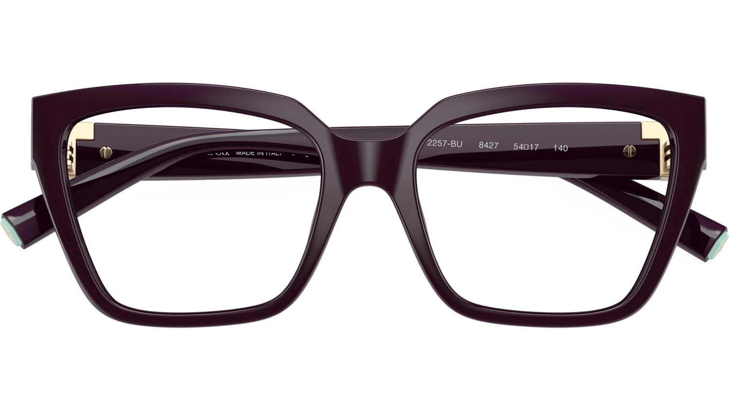 Tiffany optical frame for women model 0TF2257BU featuring deep kunzite full rim injection frame and base 4 demo lens. Universal fit. Frame line: Icons. Brand code: 0TF2257BU. Color code: 8427. Authorised Tiffany Eyewear Online Reseller. Your glasses will come including the original case and accessories and will be covered by 12 month global warranty.