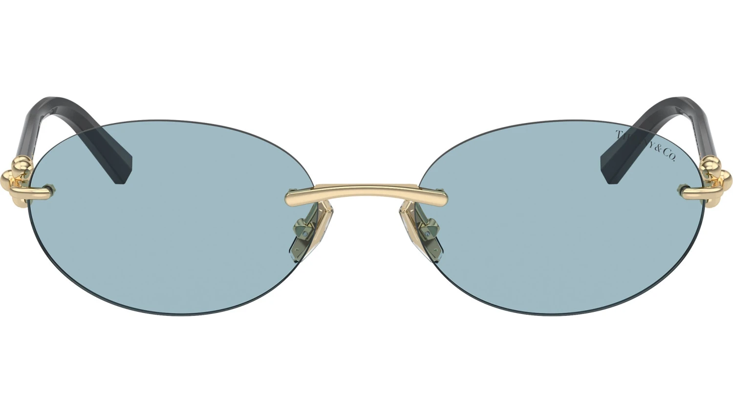 Tiffany sunglasses for women model 0TF3104D featuring pale gold rimless metal frame and base 4 blue lenses. Low bridge fit. Frame line: Icons. Brand code: 0TF3104D. Color code: 602180. Authorised Tiffany Eyewear Online Reseller. Your glasses will come including the original case and accessories and will be covered by 12 month global warranty.