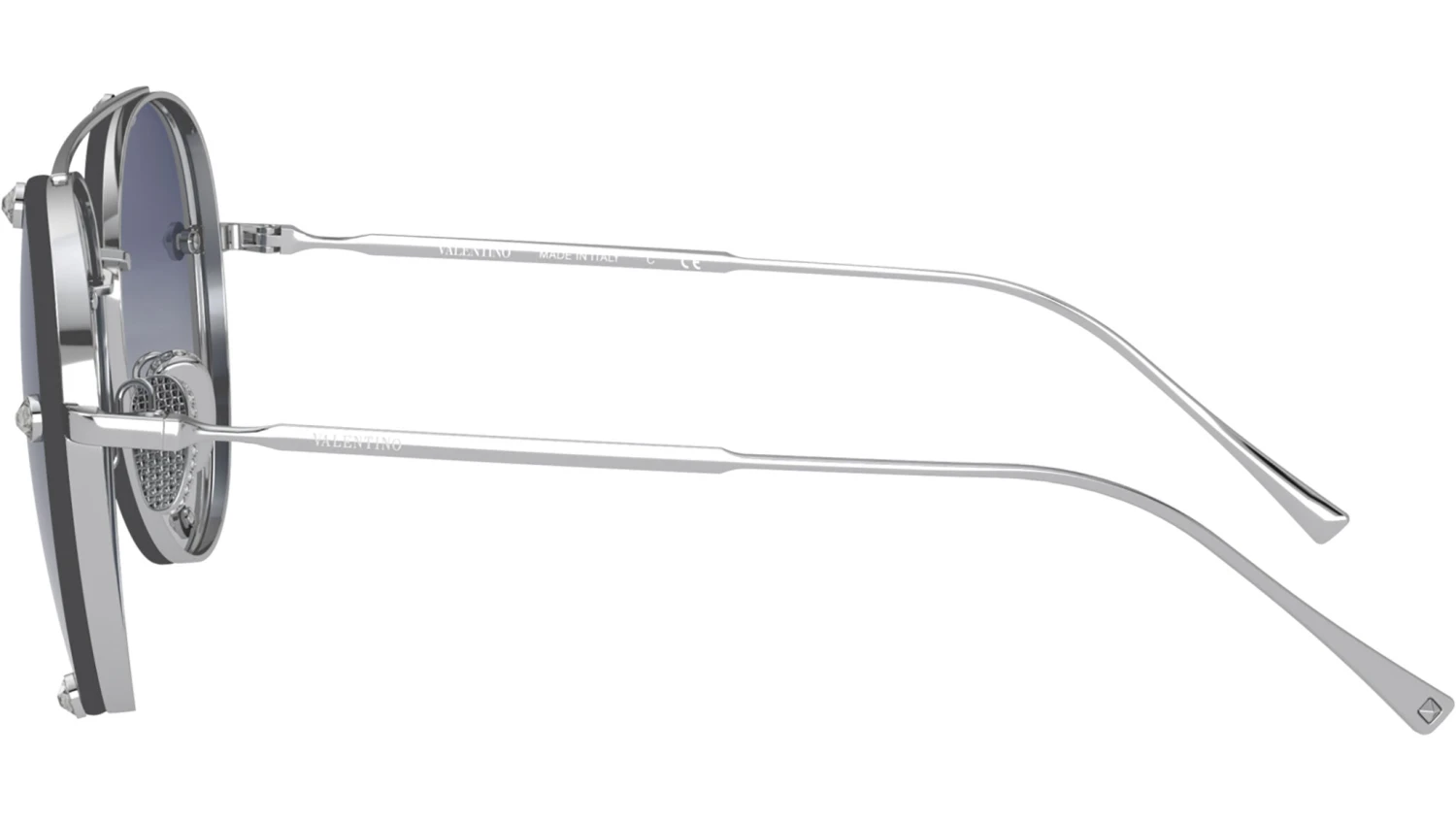 Valentino sunglasses model VA2045, silver frame variant, color code 30064L with gradient blue lens. Established in Rome in 1960, Maison Valentino is one of the highest expressions of couture savoir faire and the excellence that has made Italian products famous worldwide. Lightness, grace and precious delicacy are the DNA of Valentino. The Valentino eyewear collections, launched in 2017, embodies the Maison’s timeless elegance in a perfect balance between tradition and innovation in full respect of the iconic values of the brand.